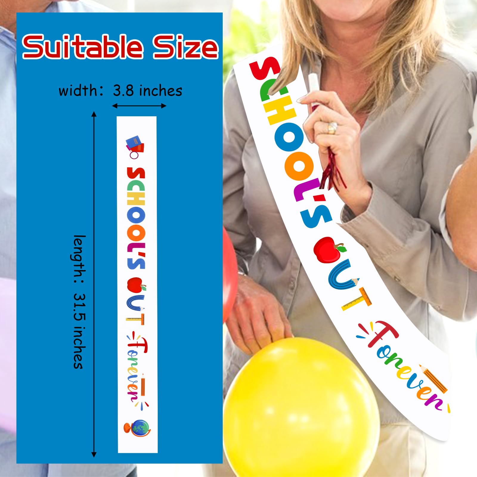 【Materialinformationen】 Die Schärpe für den Ruhestand der Schule ist aus glattem Satin. 【Geeignete Größe】Lehrer Ruhestand Schärpe ist 160., 0 cm Länge und 9., 5 cm Breite. Wir Werden Dich Vermissen Quot;Lehrer Außer Dienst - Lehrer Im Ruhestand, Professor Im Ruhestand, Professor Sabbatical, Lehrer Girlande Abschied Ideal für Lehrer Ruhestandsparty, glückliche Ruhestandsparty, wir werden Sie vermissen Partydekorationen. 【Lehrer-Ruhestands-Schärpe】 Sie erhalten 1 exquisite Lehrer-Ruhestandsschärpe mit Buchstaben School's Out Forever, was eine gute Wahl für Ihre Lehrer-Ruhestandsparty ist. Anmerkungen: Manuelle Messung, bitte erlauben Sie leichte Fehler bei der Größe. Lehrer-Ruhestands-Schärpe enthält: 1 x Schärpe für den Ruhestand., Farbe: wie abgebildet., Größe: ca., 160 x 9,5 cm., Material: Satin. Dieses Größendesign macht diese Schärpe für die meisten Menschen geeignet, sodass Sie sie mit Zuversicht tragen können. Lehrer außer Dienst - Lehrer im Ruhestand, Professor im Ruhestand Diese Schärpe für den Ruhestand der Schule wird Ihre Lehrer-Ruhestandsparty hervorheben 【Einzigartiges Design】 Die Schärpe für Lehrer im Ruhestand verwendet eine Vielzahl von lustigen Mustern, um die Buchstaben School's Out Forever zu bilden, sodass sie sich sehr von der normalen Schärpe unterscheidet. Material. Satin ; Brand. Serencatcher ; Unit count. 1.0 count ; Theme. teacher ; Item dimensions L x W x H · 160 x 9.5 x 80 centimetres Diese Schärpe für den Ruhestand der Schule ist eine stilvolle Party-Dekoration für Lehrer, die eine Vielzahl von lustigen Mustern verwendet, um die Buchstaben School's Out Forever zu bilden, damit Sie auffallen und auffällig werden. Serencatcher Party-Dekorationen für Lehrer, Ruhestand, Schulausgehen, für den Ruhestand, Satin, für lustiger Lehrer, offizieller Ruhestand, Happy Retirement, We Will Miss You, Party-Dekorationen Die Farbe kann aufgrund unterschiedlicher Bildschirmeinstellungen leicht abweichen.