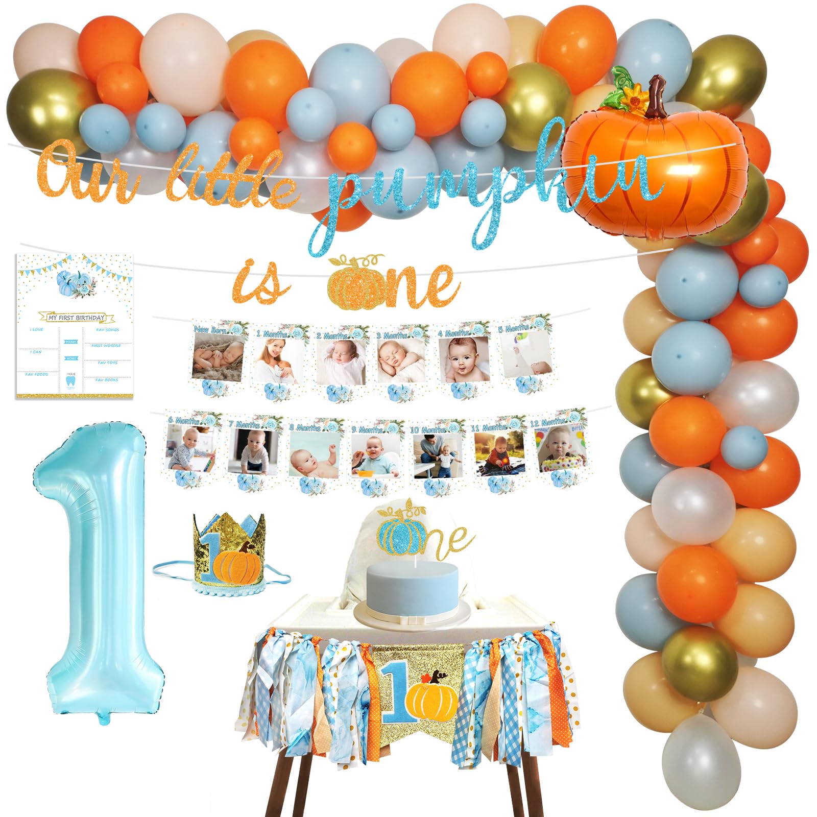 Little Pumpkin Babyparty-Dekorationen – Ein Süßer Kürbis Ist Unterwegs Hintergrund, Herbstdekorationen, Blauer LKW-Jungen-Partyzubehör