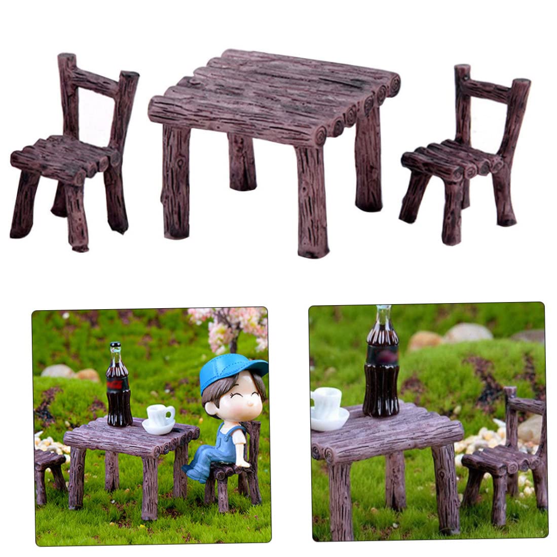 9 Adet Peri Bahçe Mobilyaları Süsler Mini Dekoratif Reçine Çiçek Masa Sandalye M