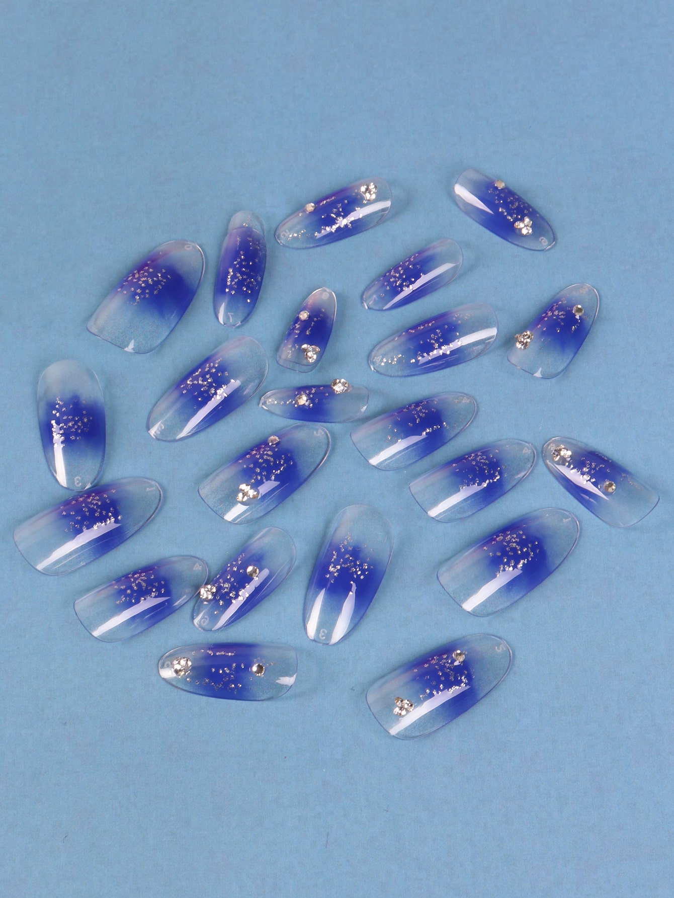 Falsche Nägel Bling Art Blau Matte 24 Squoval Kunstnägel Mittel