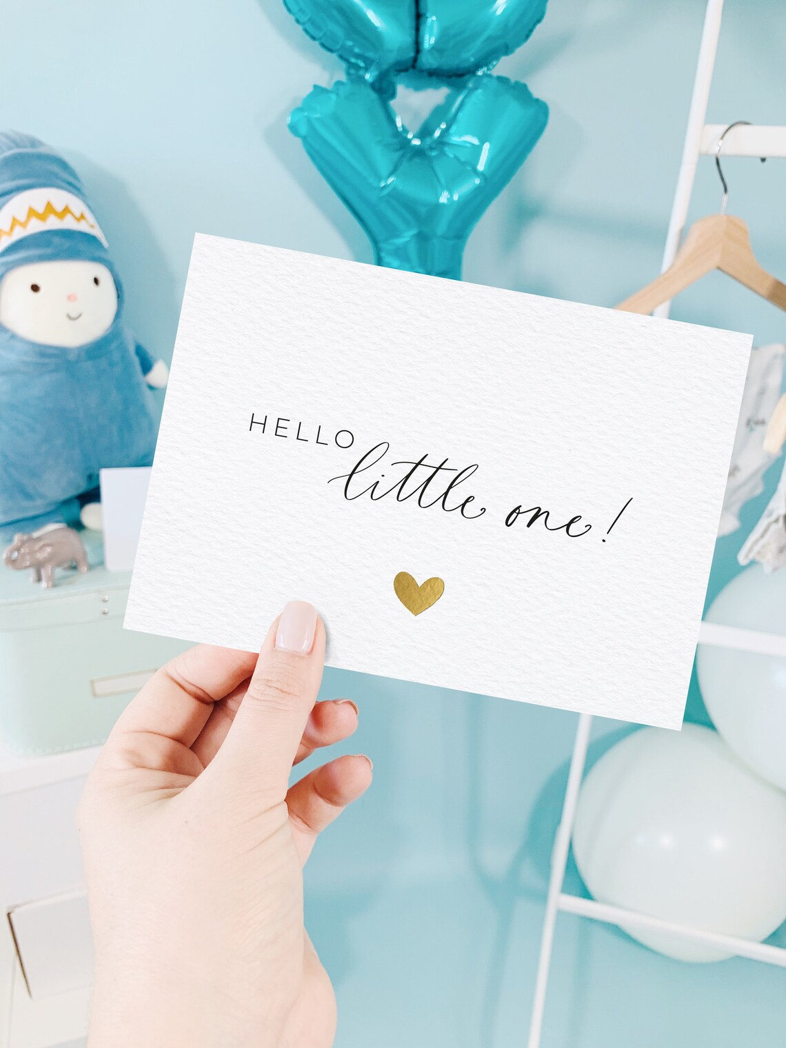 Postkarte "hello Little One" Bär, Karte Für Babys, Geburtskarte, Postkarte Mit Spruch , Hochformat , Digital