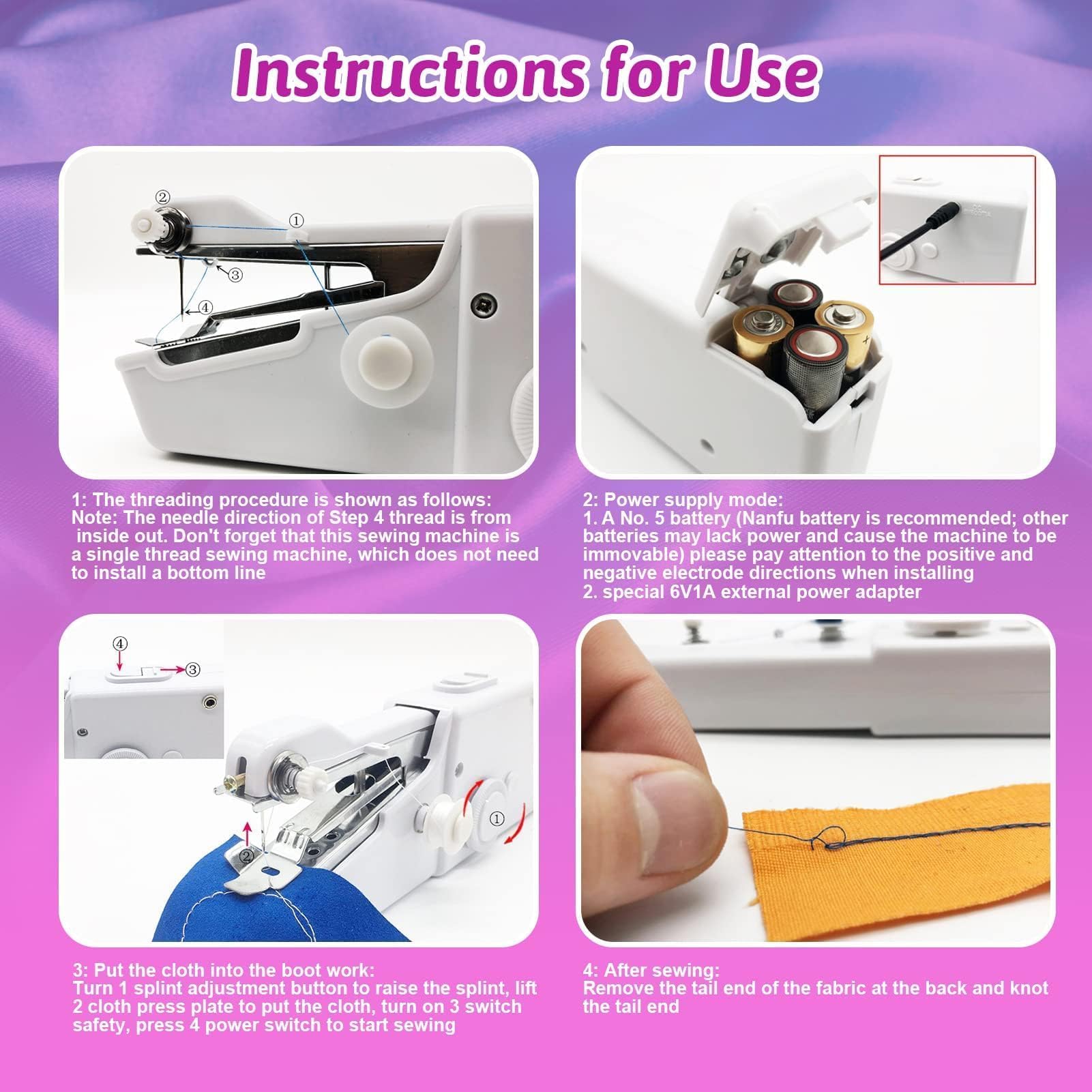 Vinnyooc Mini Handnähmaschine, Tragbare Reisenähmaschine, Elektrische Nähmaschine Set Für Kleidung Schürzen Haustierkleidung Jeans Vorhängen