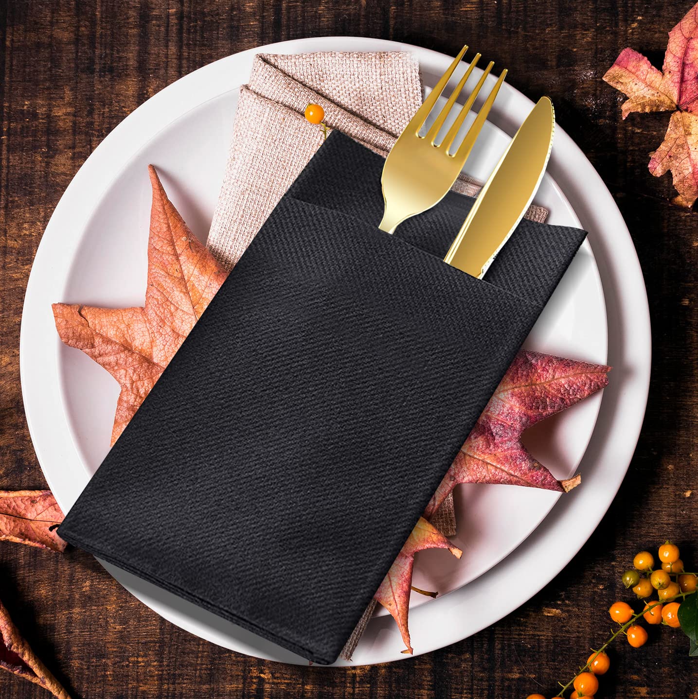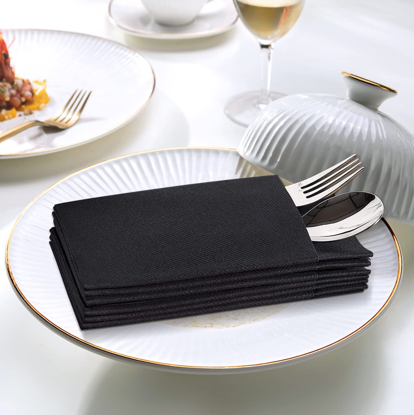 Leinen-Feel Servietten Bestecktasche – 50 Stück Schwarze Einweg-Servietten, Stoffähnlich, Dekorative Papierhandservietten, Weich Und Saugfähig Für Küche, Party, Hochzeit, Bankett Oder Veranstaltungen