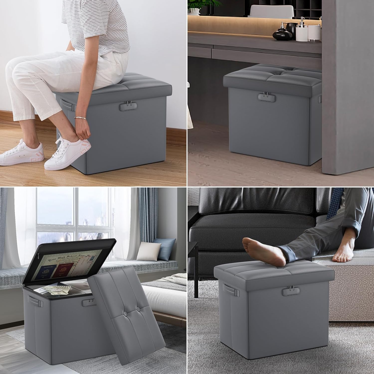 Wenn es Qualitätsprobleme mit dem Aufbewahrungshocker gibt, können Sie sich gerne an uns wenden. Bitte merken Sie sich Ihre persönliche Kombination auswendig! Drehen Sie das Sitzkissen um, um den Fußhocker in einen kleinen niedrigen Tisch zu verwandeln, auf dem Bücher, Elektronik usw., Platz finden. Hocker Stauraum Vintage Lederhocker & Fußhocker Aus Leder Günstig Kaufen Schuhbank Mit Sitzfläche Wie setze ich das Zahlenschloss zurück? Das faltbare Design des Fußhockers ermöglicht eine einfache Aufbewahrung, wenn er nicht benötigt wird, und bietet Ihnen so flexiblere Möglichkeiten bei der Gestaltung Ihres Zuhauses. Feuerfester Aufbewahrungs-Fußhocker: Die Oberfläche der Fußstützenbox besteht aus feuerfestem und wasserdichtem, verbessertem Silikon-Glasfasergewebe, das Temperaturen von bis zu 4200 °F standhält, feuerfest und wasserdicht ist und die SGS-Prüfung (UL94-Zertifizierung) bestanden hat. Tamfile Aufbewahrungshocker, Feuerfester Klappbarer Fußhocker mit Deckel, 43 x 33 x 33cm wasserdichter Fußhocker aus Kunstleder mit Schloss und Griff für Schlafzimmer, Flur, Wohnzimmer, Dunkelgrau Die Aufbewahrungskiste eignet sich zur Aufbewahrung von Bürodokumenten oder Wertgegenständen im Haushalt. Bis zu 33% Rabatt Silvano Fußhocker mit Stauraum | Groupon Herzlichen Glückwunsch, Sie haben Ihre persönliche Kombination festgelegt! Wir versprechen, umgehend eine Rückgabe/einen Umtausch oder eine 100-prozentige Rückerstattung zu veranlassen. Zusammenklappbarer Aufbewahrungs-Fußhocker: Die Ottomane hat die Maße 43x33x33cm und besteht aus einem Sitzkissen und einer Aufbewahrungsbox. Mit einer statischen Tragfähigkeit von bis zu 700 Pfund ist es langlebig und fällt auch nach längerem Gebrauch nicht auseinander. Vielseitiger Aufbewahrungs-Fußhocker: Der Fußhocker verfügt über ein dreistelliges Zahlenschloss für Privatsphäre und eine Netztasche auf dem oberen Deckel für zusätzlichen Stauraum. Die Oberfläche des Sitzkissens ist mit wasserdichtem PVC-Leder bezogen und der Innenraum ist mit hochelastischem Schwamm gefüllt, wodurch sich der Fußhocker bequem und fortschrittlich anfühlt. Fußhocker | Ottomane mt stauraum, Aufbewahrungshocker, Polsterhocker