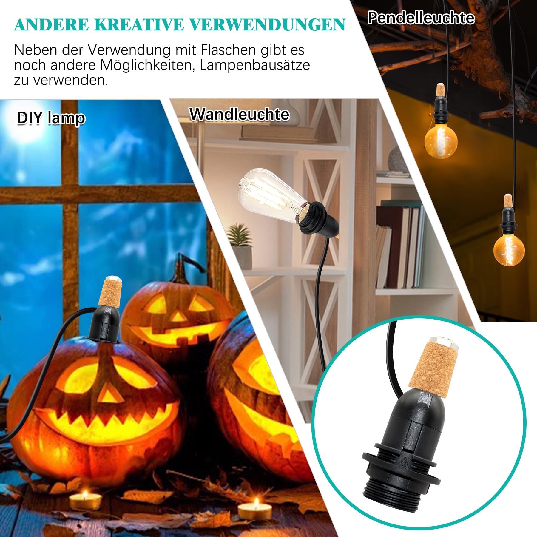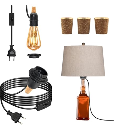 E14 Lampenfassung mit Schalter, Eurostecker, weiß, 400cm 60 Watt max Haushaltslampe empfohlen. Einfach zu bedienen Flaschenlampenadapter ist unglaublich einfach einzurichten, ohne Verkabelung oder Bohren erforderlich. Sie drehen einfach die Lampenfassung in die Oberseite der Flasche, um sie zu sichern. Bequem zu bedienen: Der Glühbirnenhalter ist eine Standard E14 Grundgröße wie eine Haushaltslampe und enthält einen Ein-Aus-Push-Schalter, 1,8M Netzkabel für Komfort. Schöner langer Draht und leicht zugänglicher Schalter. Plug in/out wird nicht blockieren, bequemer zu bedienen. Flasche nicht enthalten: Paket enthält 2-Einheit, bitte kontaktieren Sie uns, wenn es irgendein Produktqualitätsproblem über unser Produkt gibt., c Lampenfassung für Flaschen, E14 Flaschenfassung mit Kabel und Schalter, 240 cm Flaschenlampe Aufsatz, DIY Flaschenlampe Fassung für Tischlampe, Kompatibel mit Lampenschirm, für Esszimmer,60W Max Lichterkranz Fenster Lampenfassung Für Flaschen, 2 Stück E27 Fassung Aus Messing Mit Kabel Und Schalter 240cm, Bronze Flaschenadapter Lampe Kit, DIY Flaschenlampe Aufsatz LED Für Tischlampe, Keramik Fassung Flaschenlampe Led Untersetzer Bonlux E14 Backofenlape Warweiß Lape Backofen Bis 300 Grad Dibar... DIY Dieses lampenfassung für flaschen ermöglicht es Ihnen, Ihre wertvollen Wein-, Brandy- oder dekorativen Flaschen einfach in einzigartige, praktische elektrische Lampen umzuwandeln. Einfach zu bedienen: Flaschenlampenadapter ist unglaublich einfach einzurichten, ohne Verkabelung oder Bohren erforderlich. Sicher Zur Verwendung Das Kabel kommt seitlich aus dem Bung und würde nicht durch den Sockel der Lampe gehen. Kann mit fast jedem Farbton verwendet werden!