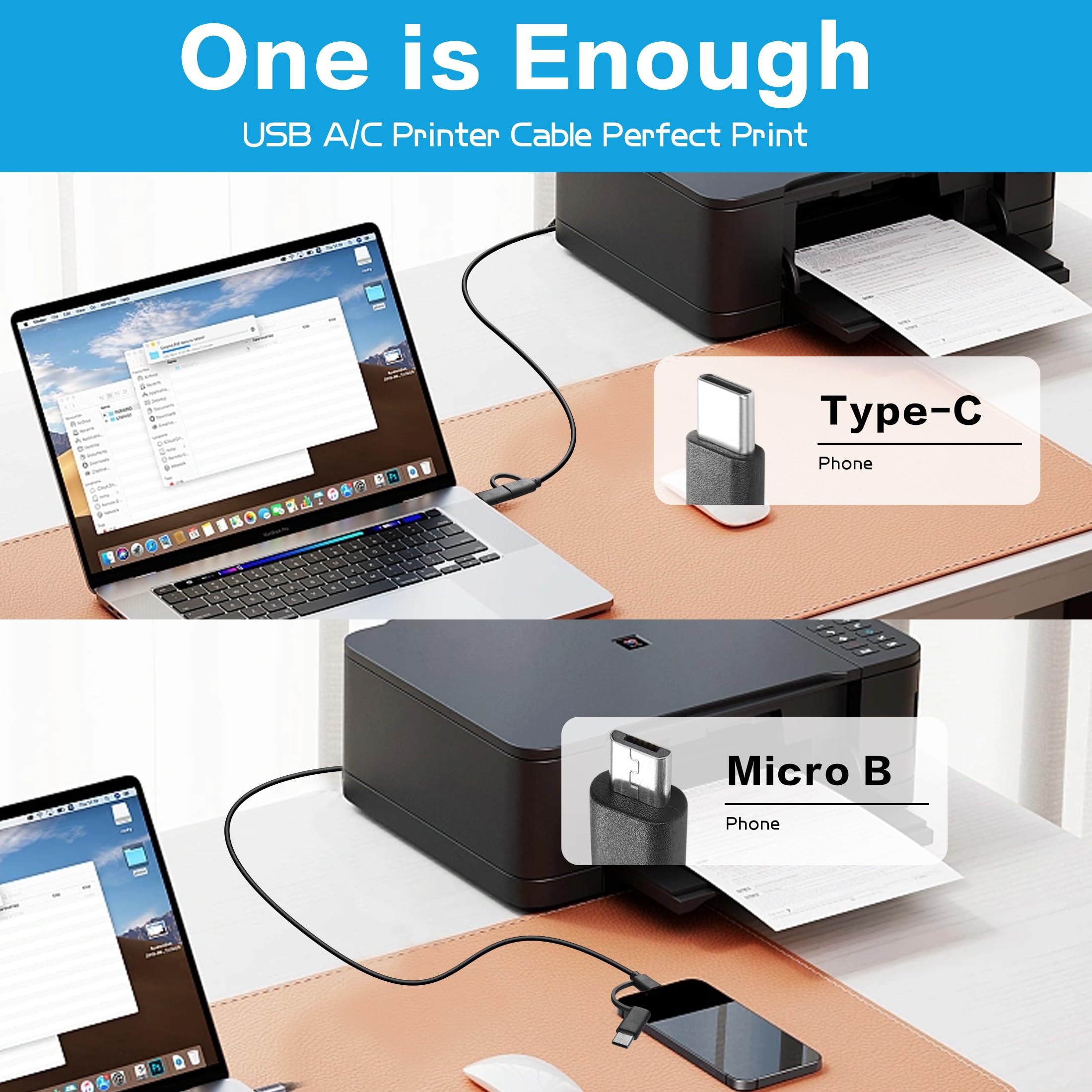 YACSEJAO 2-in-1 USB-Druckerkabel 6.6FT Micro USB 2.0 + Typ C Zu