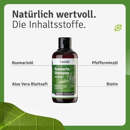 Casida® Rosmarin Shampoo Mit Biotin - Shampoo Mit Rosmarinöl Für Haarwachstum - Für Kraftloses, Dünner Werdendes Haar - Ohne Sulfate, Silikone, SLS - 200ml
