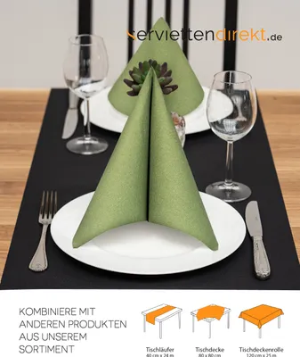 de+49 24 41 / 83-228Stichworte: TischdekorationAuf dem Foto gezeigtes Dekorationsmaterial wird nicht mitverkauft. Weitere Informationen:- Farbe: grün- Material: Tissue- Materialstärke: 49,5 gr. Mank Tissue-Servietten 40x40 cm | Premium Einweg-Serviette | saugstark | perfekt für Weihnachtsfeiern & Adventsfeiern | Weihnachtsservietten | 100 Stück | Sternenschein (Rosé-Silber Bei findest du alle erdenklichen Arten an Servietten, von Bestecktaschen bis zu Servietten mit 1/4-Falz, 1/6-Falz und 1/8-Falz. Servietten mit Dekor oder ganz schlicht und elegant Farben können je nach Monitoreinstellung oder produktionsbedingt vom Foto abweichen. das häufigste Serviettenformat. Servietten Weihnachten Nostalgie Servietten, 3-lagig 1/4-Falz 25 X 25 Cm "Berries Servietten Grün Umweltfreundliche Tissue Servietten mit Frühlingsmotiv - 25 x 25 cm - 3-lagig - 1/4-Falz Bedruckt mit Farben auf Wasserbasis, ohne optische Aufheller Produktzertifizierungen: - FSC®-zertifiziert
