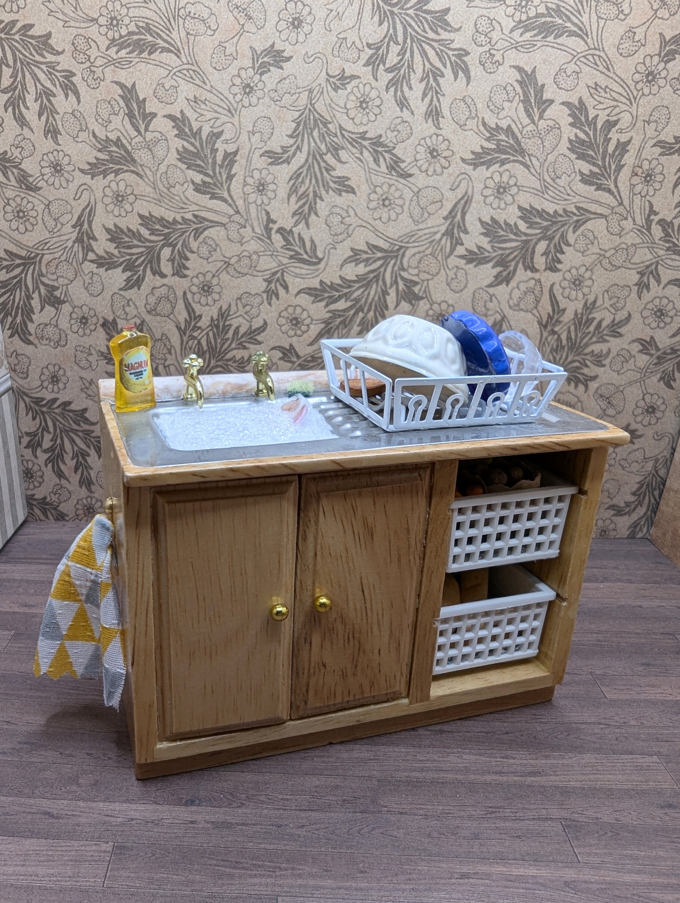 Puppenhaus, Badezimmer, Puppenhaus, Miniatur-Küchenspüle, 11 X 10 X 6 Cm, Puppenhaus, Maßstab 1:12, Miniaturmöbel, Modell, Küchengeschirr, Spültisch Mit Körben