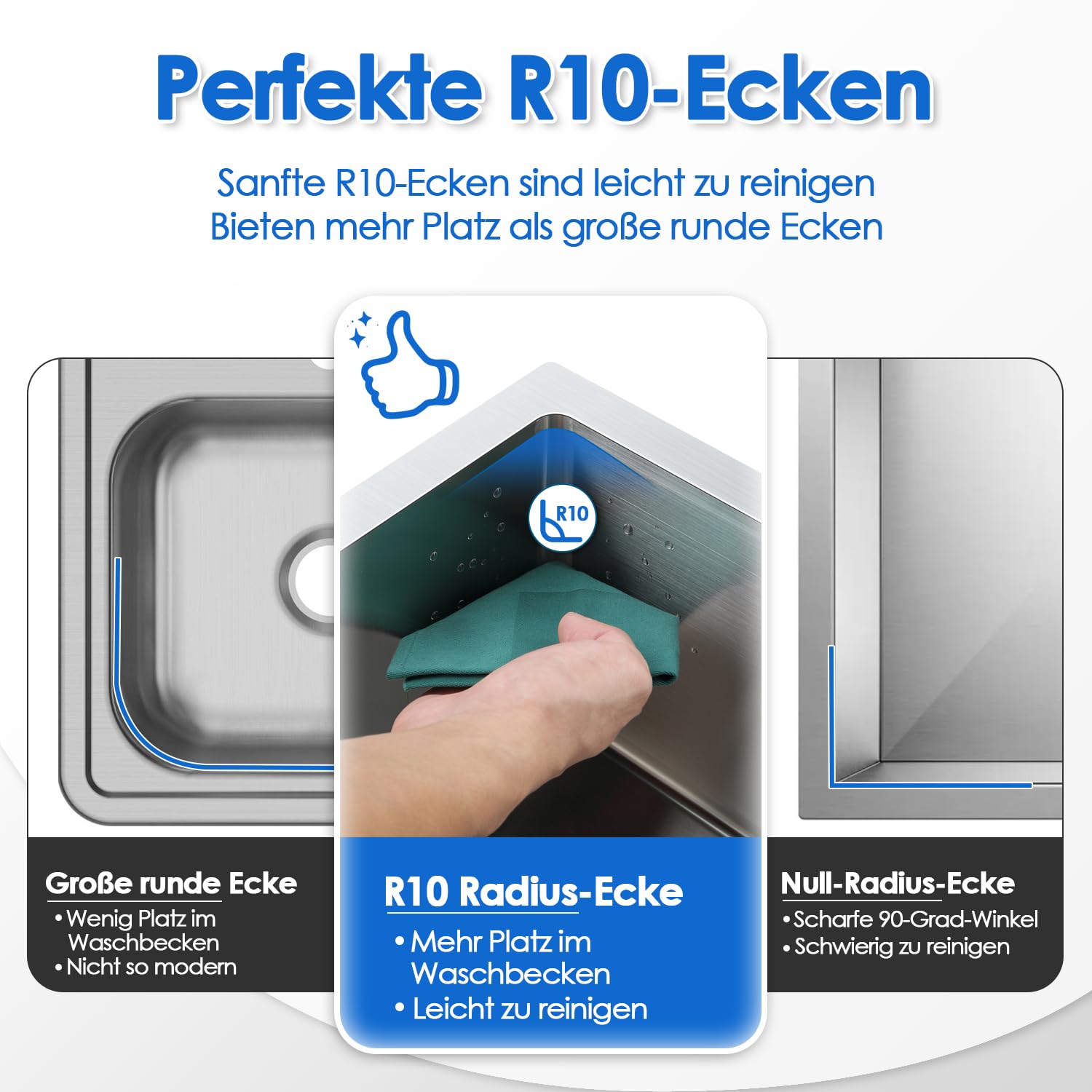 EDELSTAHL EINBAUSPÜLE KÜCHENSPÜLE Spülbecken Eckig Spüle Mit Abtropffläche 166685273786 CARESS Küchenspüle CAPP1534ABR, reckteckg, 110/52 cm, Mt Öffnung... Vorteile: ① Minimiert Wassertrommelgeräusche und reduziert Vibrationen. ② Reduziert Kondensation an der Unterseite der Spüle, hält Schränke trocken und sauber 58,4 cm Küchenspüle Größe --- Außenmaße 58,4 cm (breit) x 45,7 cm (von vorne nach hinten) | Innenmaße: 53,3 cm (breit) x 40,6 cm (von vorne nach hinten) x 22,9 cm (Schüsseltiefe) | Standard-8,9 cm Ablauföffnungen passen auf jede Müllentsorgungseinheit Der enge Radius von 10 mm in den Ecken bietet eine leicht gebogene Ecke für eine einfache Reinigung und behält gleichzeitig den modernen Look. EDELSTAHL EINBAUSPÜLE KÜCHENSPÜLE Spülbecken Eckig Spüle mit Abtropffläche 40*45 - EUR 66,98.ZU VERKAUFEN! Spülen Edelstahl Küchenspüle 55 x 44 cm Spülbecken Küche, für Edelstahlspüle ab 60er-Schrank, Flächenbündig, Unterbau oder Einbau, Schwarzgrau Spülen Preis ab 86,98 € (11.03.2025). Jetzt kaufen Im Gegensatz zu satinierter Oberfläche verbirgt unsere gebürstete Oberfläche Kratzer und passt gut zu Ihren Küchengeräten. Küchenspüle Aus Edelstahl. Unterbau, Einbau Spülbecken. Stark Und
