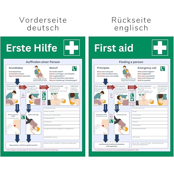 LEMAX Industriebedarf ist Ihr Anbieter für alle Bereiche der gewerblichen Kennzeichnung. In Bild- und Textform sind die wichtigsten Rettungsmaßnahmen erläutert, des Weiteren gibt es auf dem Aushang die Möglichkeit die Notrufnummer und die Nummern und Namen der Ersthelfer einzutragen. Erste Hilfe Plakat 277 x 420 mm - Neuester Stand 2025 nach DGUV Anleitung zur Ersten Hilfe bei Unfällen, MEDIC e.U. Online Erste Hilfe Schild Erste Hilfe Bei Unfällen Durch Elektrischen Strom - Kunststoff Verhalten Bei Unfällen 214/75 in englischer Ausführung!, Materialien: Kunststoff LEMAX Schild PVC Anleitung zur Ersten Hilfe bei Unfällen 595x410mm Durch die Ausführlichen Erklärungen und zusätzlicher Bebilderung ist es auch ungeschulten Personen möglich Erste Hilfe zu leisten, ohne sich oder den Verletzten in Gefahr zu bringen. zur Kennzeichnung von Rettungswegen, Brandschutz, langnachleuchtende Kennzeichnungen, Sicherheits-, Gefahrstoff- und Rohrleitungskennzeichnung, Prüfplaketten, Qualitätskennzeichnung, Kraftfahrzeugkennzeichnung und Verkehrszeichen. Dieser Aushang dient als Hinweis und wird für Schulungszwecke verwendet! Größe: 14,8 x 21,0 x 1,0 cm - - ST3026 SÖHNGEN Erste Hilfe Zusatzausstattung in unserem Online-Shop günstig und sicher bestellen Marahrens bietet Schilder & Sicherheitsausstattung zu günstigen Preisen und in Top-Qualität.