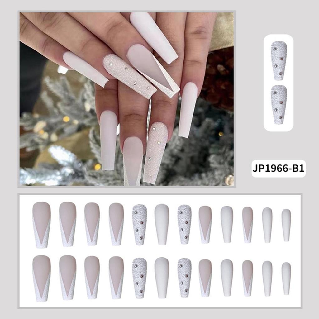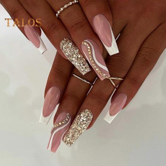 24 Stücke Lange Ballerina Gefälschte Nägel Französisch Glitter Kristall Falsche Nägel Volle Abckung Nagels Pitzen Drücken Auf Nägel DIY Abnehmbare Maniküre