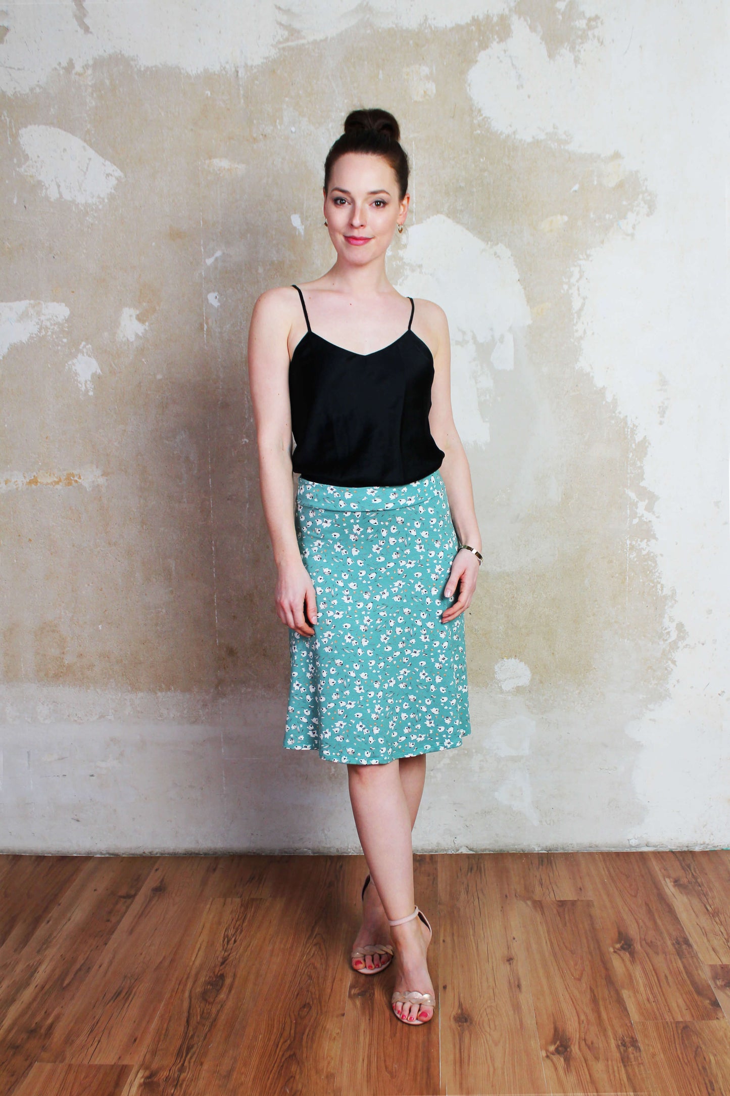 GORGLITTER Damen Blümchen-Knielangrock Sommerrock Mit Elastischer Bund