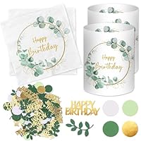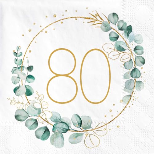 Servietten Geburtstag Eukalyptus Grün, 80 Stück Happy Birthday