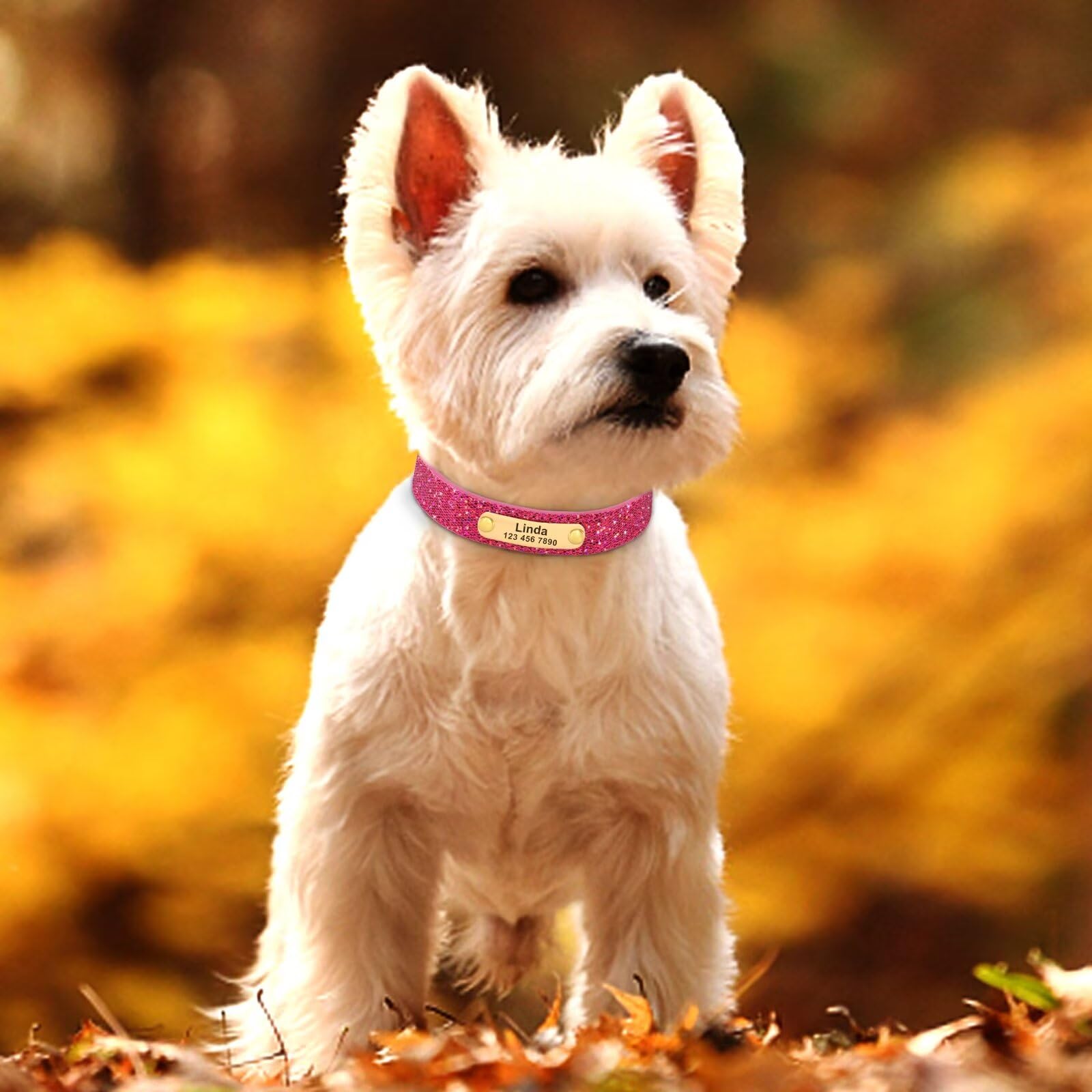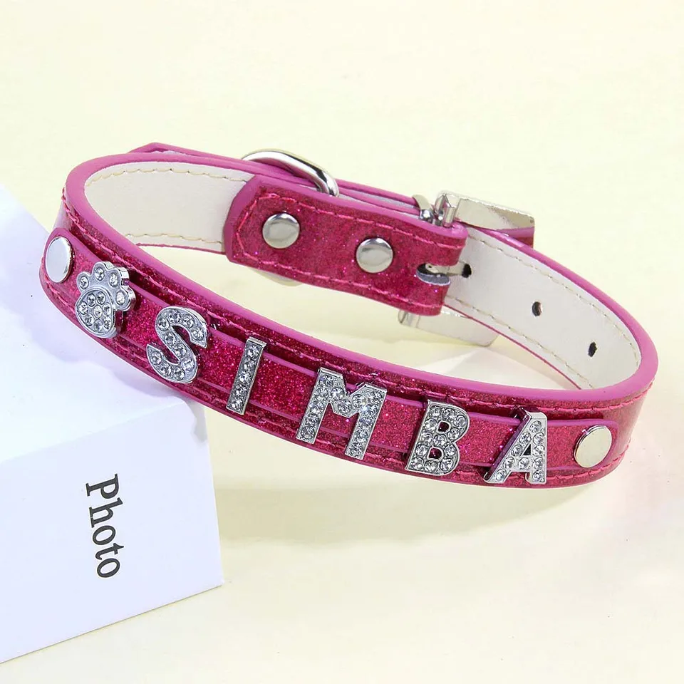 Didog Glitzernde Hundehalsbänder, Personalisiertes Hundehalsband PU-Leder Glitzernden Bling-Pailletten, Individuelle Hundehalsbänder Graviertem Namensschild Kleine Mittelgroße Hunde Katzen, Regenbo M