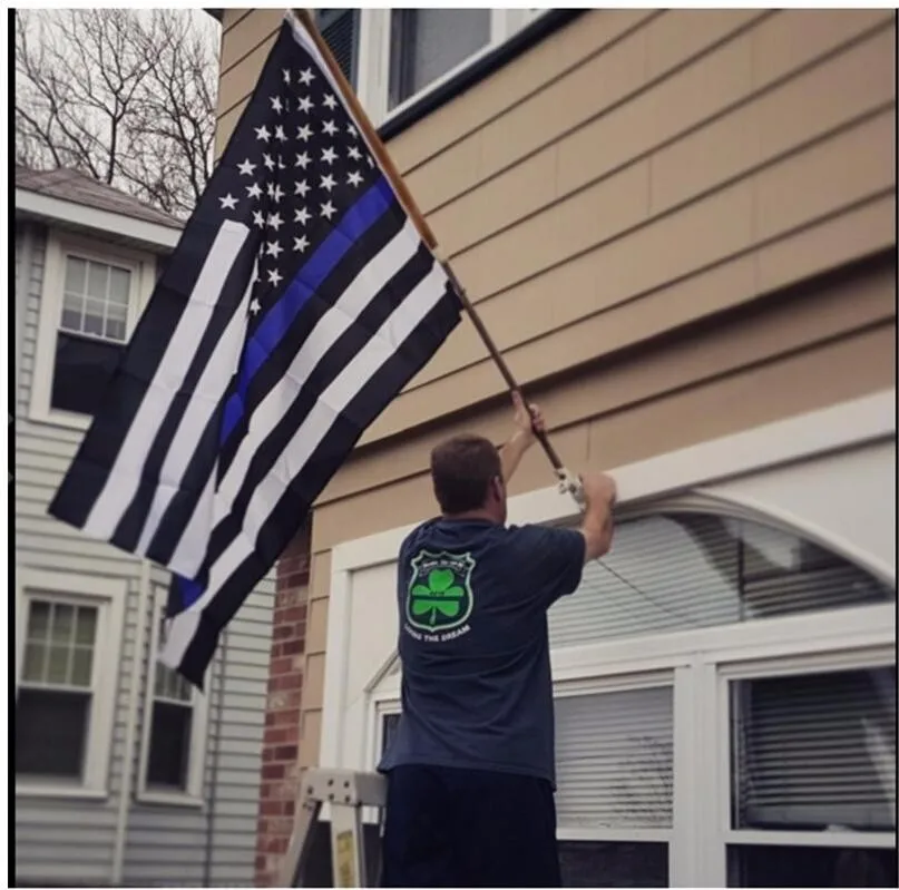 Freies Verschiffen Grüne Linie USA Polizei Fahnen, 90*150 Cm Thin Blue Line Usa Flagge Schwarz Weiss Und Blaue Linie Mit Oesen