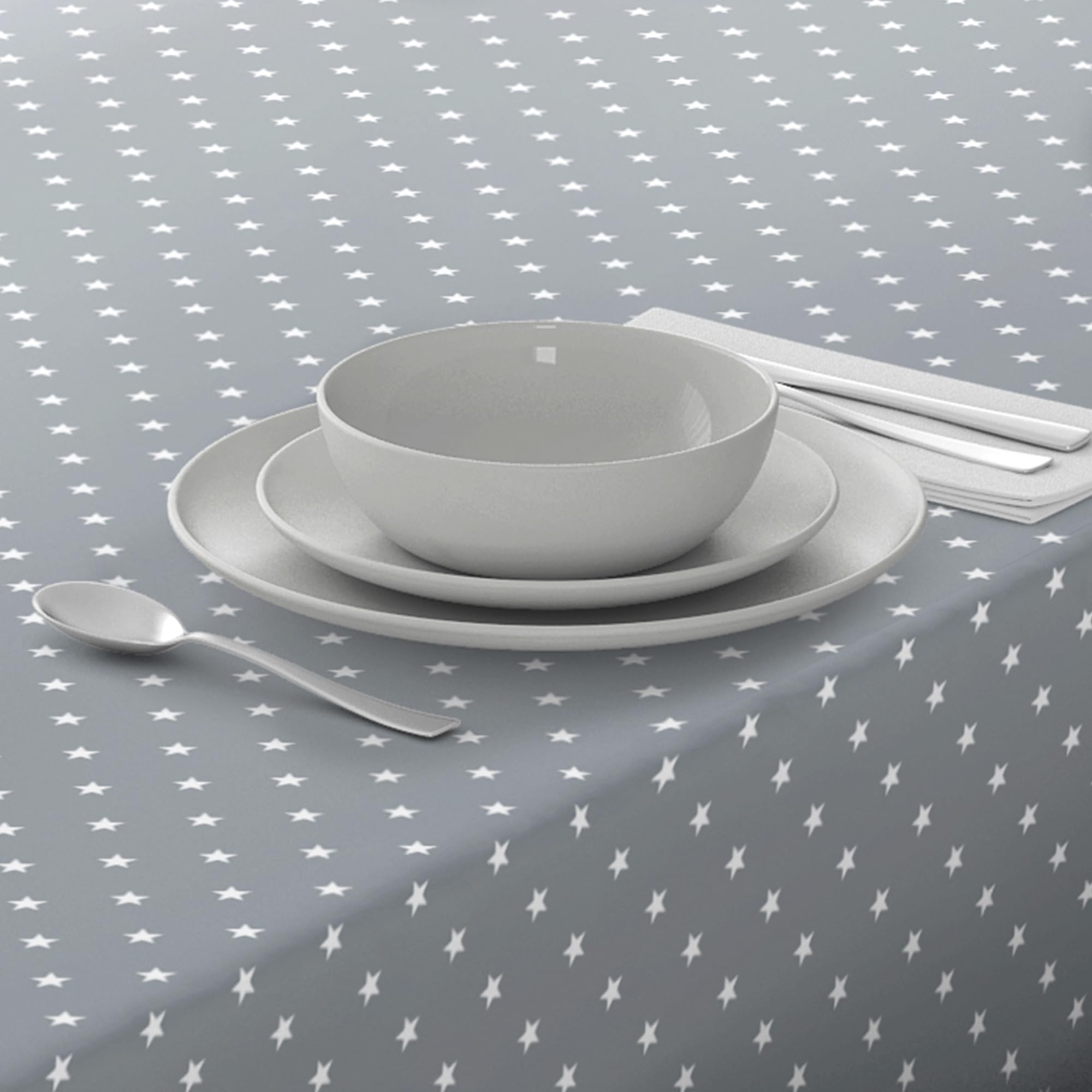 PVC Tischdecke Star Grau Sterne Weiss Wachstuch · Breite & Länge Wählbar · Abwaschbare Tischdecke Weihnachten, Größe:140 X 100 Cm