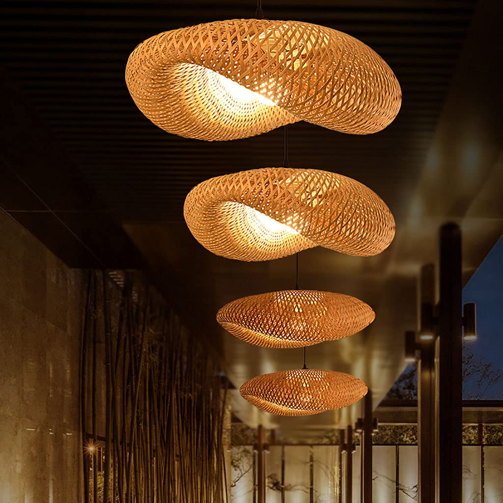 Vintage Bambus Hängelampe Esstisch Pendelleuchte Höhenverstellbar Kronleuchter Lampenschirm Deckenbeleuchtung