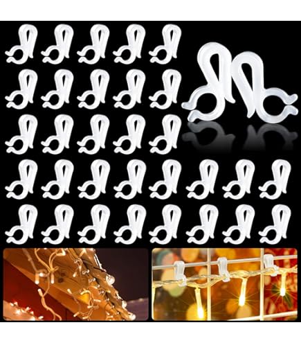 Geeignet für alle Arten von verkabelten Dekorationslichtern für Hochzeiten, Partys, Ostern, Weihnachten, Neujahr und geschäftliche Feierlichkeiten. Halten Sie Dekorationslichter sicher im Innen- und Außenbereich an Ort und Stelle, keine Sorgen, dass sie in der kalten Jahreszeit herausfallen Sichern Sie die Lichter schön und einfach, eine schnelle und einfache Möglichkeit, Lichterketten im Freien, Fensterlichter, Eiszapfenlichter und Meteorschauerlichter im Freien aufzuhängen. Hochwertige Umweltschutzmaterialien; langlebig, wiederverwendbar, witterungsbeständig und kann lange verwendet werden. 50 Stück Metall-Lichterketten-Clips für n Außenbereich, kleine Dachrinnenhaken Lichterkette 24 Haken Zum Aufhängen Lichterkette An Dachrinne Lichtschlauch Befestigung Kaufen Lichterkette Clips Halten Sie dekorative Lichter sicher an Ort und Stelle, keine Sorge, dass sie in der kalten Jahreszeit herausfallen. Einfache Handhabung: Schnelle Montage ohne Werkzeug – einfach einhängen und befestigen. Vielseitig einsetzbar: Für Lichterketten, Dekorationen innen/außen – Weihnachten, Feste & mehr. Unauffälliges Design: Kleine, schwarze Haken – kaum sichtbar, 120 Stück im Set