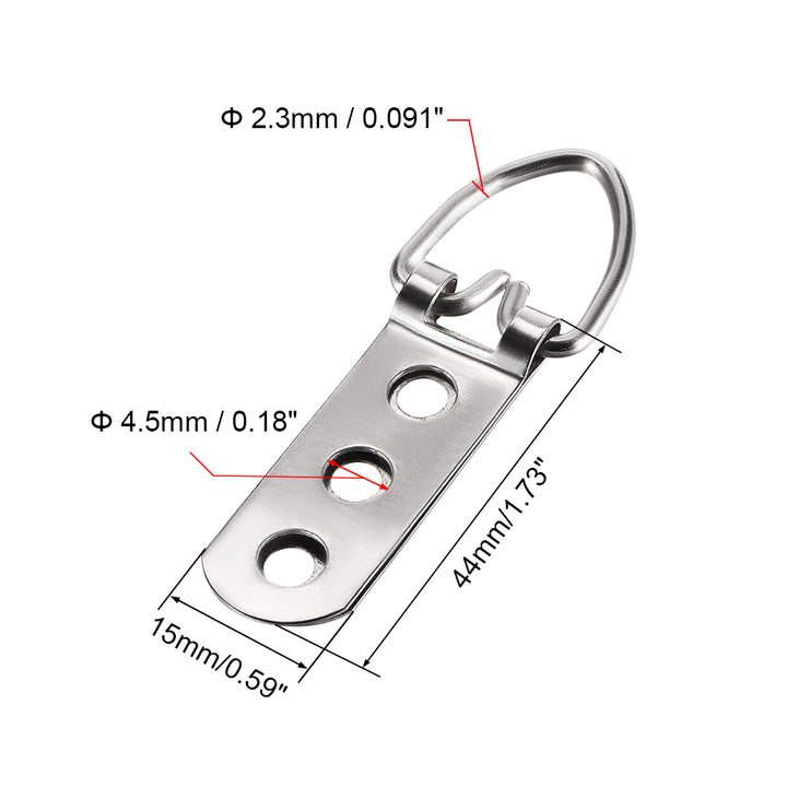 Gesamtgröße] - 64 mm lang x 22 mm breit. Befestigungsloch: Es gibt 3 Befestigungslöcher, die jeweils einen Durchmesser von 4,5 mm haben. [Langes D-Ring-Design] - Der D in unserem D-Ring hat längere innere Enden, so dass er an seiner Basis für einen stärkeren und sichereren Halt greifen kann Befestigungsloch: Es gibt 3 Befestigungslöcher, die jeweils einen Durchmesser von 4,5 mm haben. (Montageschrauben sind hier nicht im Lieferumfang enthalten). Lieferumfang: 10 x D-Ring-Bilderaufhänger. Geeignet für Bild- und Fotorahmen oder Kreuzstich. Drei Schraubenlöcher ermöglichen die sichere Befestigung des Ringaufhängers an einem Holzbilderrahmen oder Holzprojekt., Spezifikation: Material: Eisen., Montage-Loch-Qualität: 3., Montagelochdurchmesser: 4,5 mm. Einfache Montage mit mitgelieferten Schrauben. 8 Stück Bildaufhänger für Schwere Bilder, mit 24 Schrauben Uxcell D-Ring-Bilderaufhänger, 90 Mm X 22 Mm, Silberfarben, Sortiment uxcell D-Ring-Bilderaufhänger, 36 mm x 22 mm, Silberfarben, Sortiment-Set für Foto-Aufhängelösungen, 30 Stück Plattengröße: 69 mm x 15 mm (L x B)., D-Ring-Dicke: 2,4 mm.