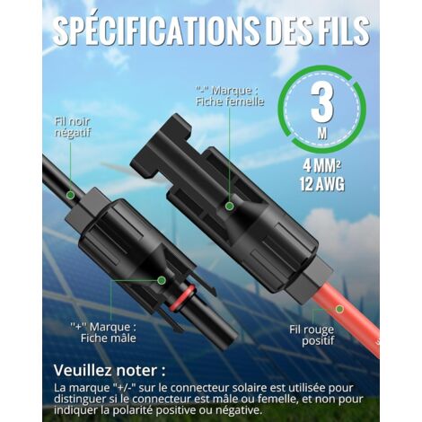 Solarkabel Verlängerung Für PV-Anlage, MC4, 4 Mm², 2x 3 M, Rot U. Schwarz