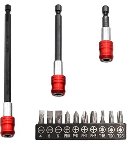 Stück Steckschlüssel-Adapter, 1/2 Zoll Vierkant auf 1/4 Zoll... 【Weit verbreitet】 Kompatibel mit elektrischen Schraubendrehern, Schlagschraubern, Bohrmaschinen und manuellen Werkzeugen, dieses Set ist ideal für Automobilarbeiten, Reparaturen im Haushalt und Heimwerkerarbeiten an schwer zugänglichen Stellen. Geeignet für den Einsatz mit Akku-Bohrmaschinen, Elektroschraubern, T-Griff-Treibern und mehr, es ist ein Muss für jeden, der Wert auf Präzision und Komfort in engen Räumen legt. 【Präzision und Bequemlichkeit】 Diese Schnellspanner-Verlängerungen sind für präzise Kontrolle und einfachen Bitwechsel konzipiert, mit einem geraden Schaft und Sechskantschaft, der für enge Räume geeignet ist und das Verrutschen oder die Fehlausrichtung des Bits reduziert. Hergestellt aus robustem Chrom-Vanadium-Stahl (Cr-V), verfügen diese Schnellspann-Bithalter über einen 6,35 mm Sechskantschaft und starke interne Magnete, die einen sicheren Halt und einfachen Bitwechsel bieten – ideal für Schlagschrauber und Bohrmaschinen. 【Paket beinhaltet】Dieses Bohrerverlängerungsset enthält 4 magnetische Bithalter in den Längen 6,3 cm, 10,2 cm, 15,2 cm und 30,5 cm und bietet eine vielseitige Auswahl an Größen, um unterschiedliche Bohr- und Befestigungsbedürfnisse zu erfüllen. Dieses schlagfeste Schraubendreher-Verlängerungsset enthält 4 Stück in verschiedenen Längen (6,3 cm, 10,2 cm, 15,2 cm, 30,5 cm), sodass Sie enge oder schwer zugängliche Bereiche erreichen können, ohne dabei auf Präzision oder Kraft verzichten zu müssen. Oniissy Magnetisches Bohrerverlängerungs-Set Bitverlängerung Magnetisch 12 Stück Bohrerverlängerung Magnetischer Bohrschrauber Bithalter Set Schlagschrauberschrauben Handschrauber Bithalter Lang Auf Lager: 4 magnetische Schraubendreher-Verlängerungsbits mit Schnellspanner, 1/4-Zoll-Sechskantschaft für Bohrmaschine und Handschraubendreher (60/75/100/150 mm) zum besten Preis, MA02-4877. Eine schnelle Lieferung überall in Deutschland möglich 【Premium-Material】Die Bithalter sind aus hochwertigem Chrom-Vanadium-Stahl gefertigt, was eine hervorragende Festigkeit, Haltbarkeit und Verschleißfestigkeit gewährleistet, mit einer glatten beschichteten Oberfläche, die vor Öl und Korrosion schützt.