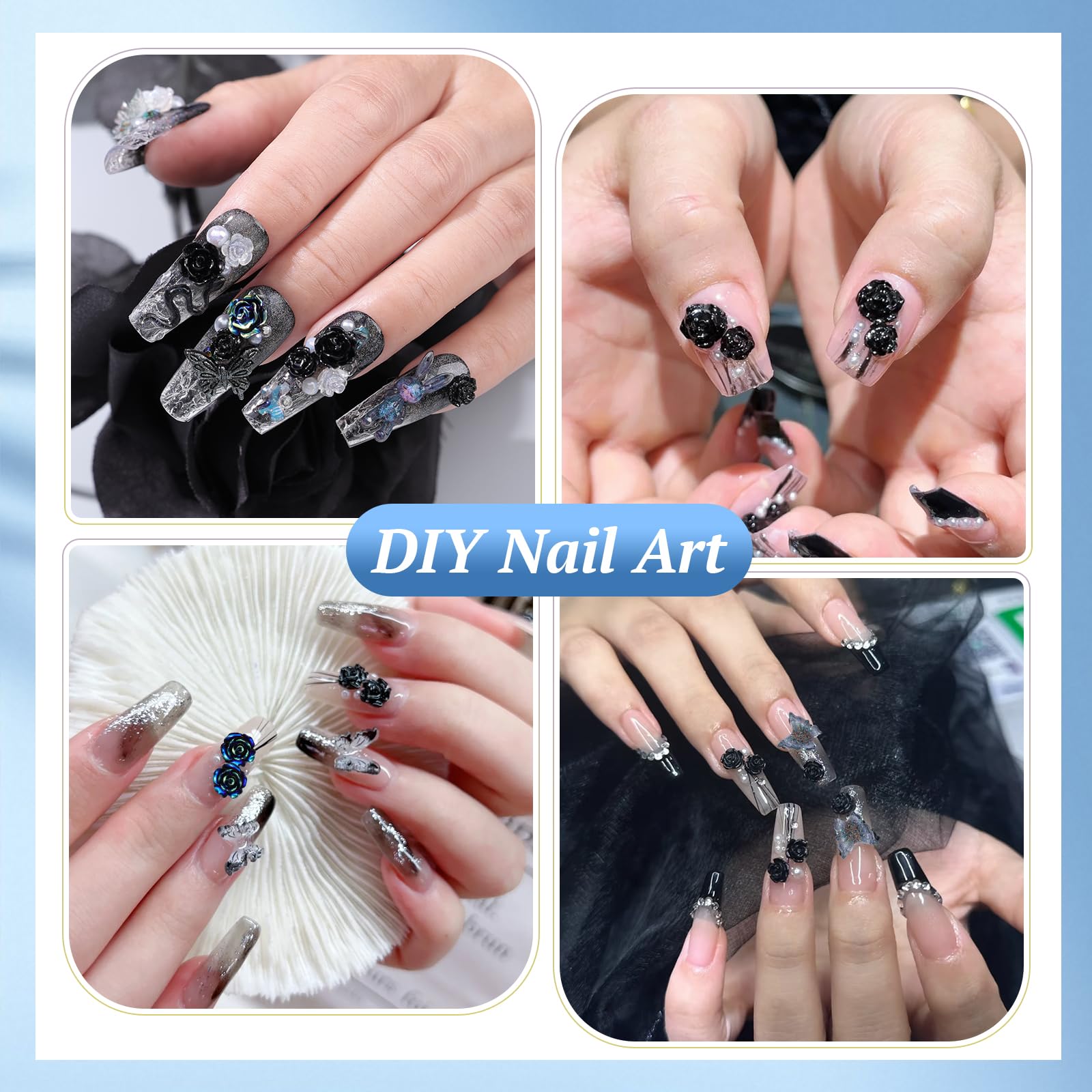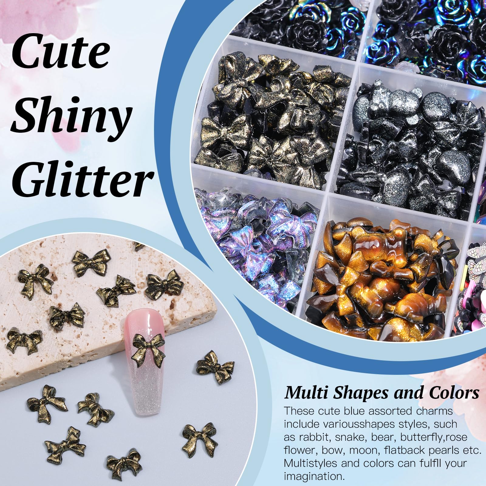 850 Stck. 3D Schmetterling Rose Blume Schleife Hase Bär Nagel