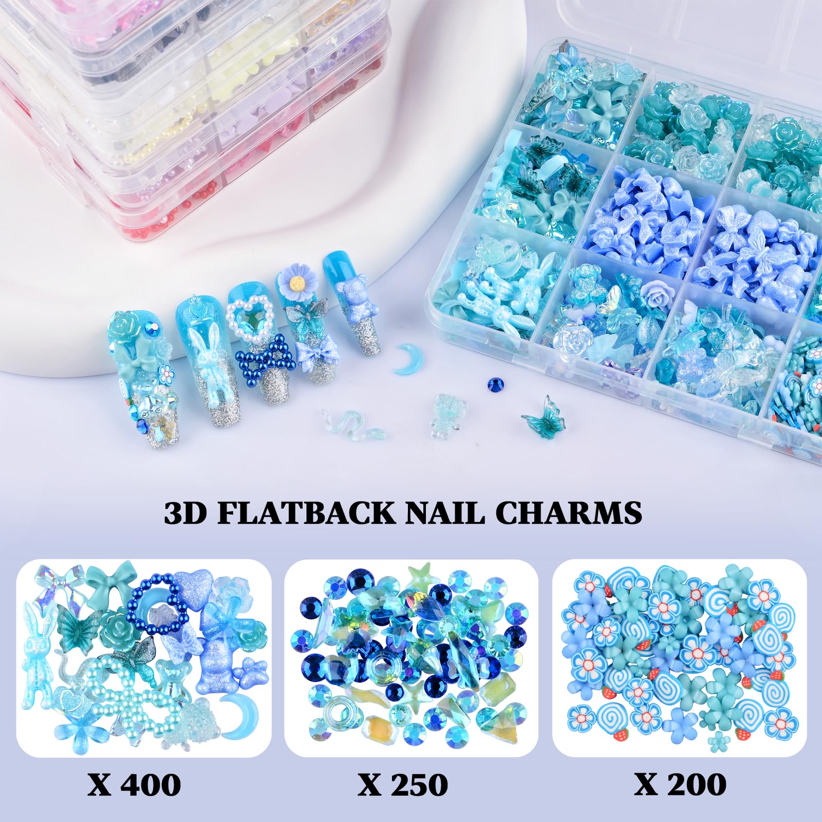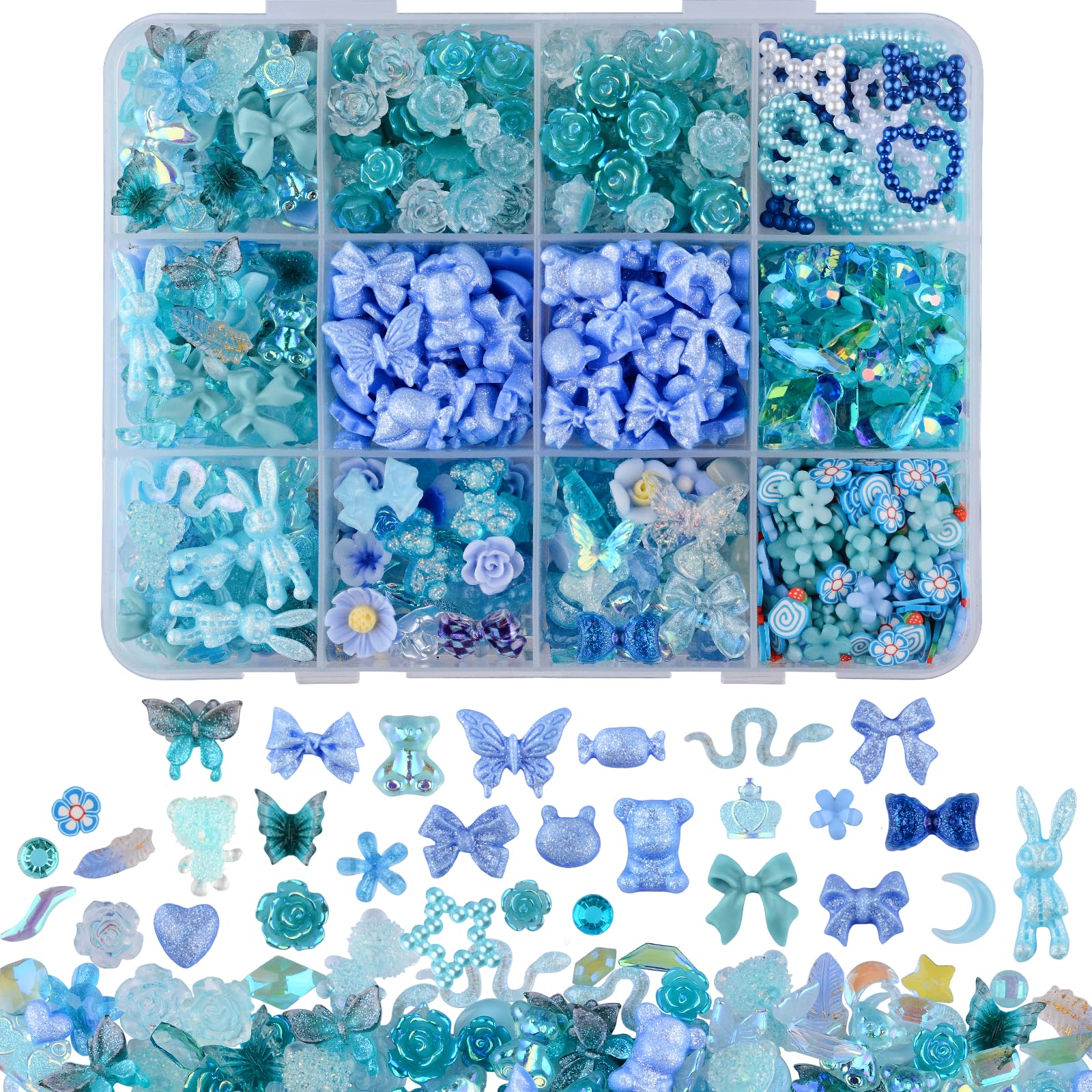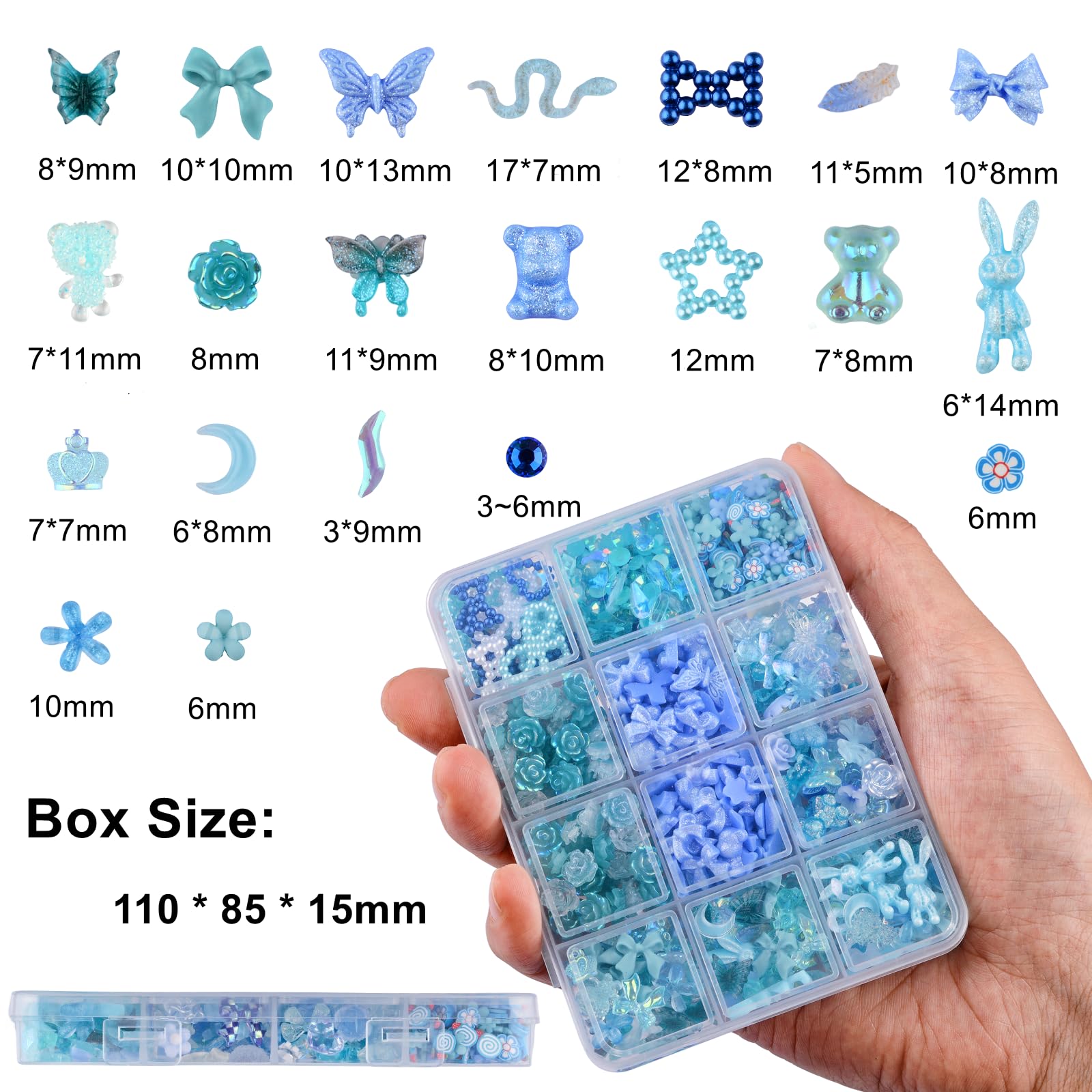 Niedliches Zubehör für Nail Art 3D Set 1 Stück durchscheinende Box mit 12 Gittern, 850 Stück Acryl Nail Art Charms Dieses Nagelset enthält mehr als 30 Stile, ausreichende Menge und Stile können Ihre unterschiedlichen kreativen DIY-Anforderungen erfüllen. 850 Stück 3D-Nagelschmuck aus Kunstharz, blauer Bär, Schmetterling, Schleife, Charms, Nagelschmuck für Mädchen. Einige der Nagel-Nieten haben die Eigenschaft, ihre Farbe mit der Temperatur zu ändern. MouyouGlow Press on Nails Super Lang,Square Leopard French 3D Hibiscus Blumen Schmetterling Crystal Gold Herz Sterne Water Rib Fake Nails with Nail Glue,Y2K Blau Cool Artificial Fingernails und können auch ein sehr kreatives Geschenk für Frauen und Mädchen sein! Die Farbe kann aufgrund unterschiedlicher Bildschirmeinstellungen leicht abweichen. Wir hoffen, dass Sie Ihrer Nagelkunst eine andere Erfahrung bringen. Spezifikationen: - Farbthema: Blau - Material: Harz. Realistische Nagelkunst-Amulette, 400 Stück größere Nageldekorationen, einschließlich Kaninchen, Schlange, Bär, Schmetterling, Hirsch und andere Tierformen Vvid, rosa Blume, Schleife, Mond, flache Perlen usw. Große Menge: mehr als 850 Stück. Exquisite Blumenscheiben für Nagelkunst, 250 Stück Blumenscheiben und Blumen mit fünf Blütenblättern. 850 Stck. 3D Schmetterling Rose Blume Schleife Hase Bär Nagel
