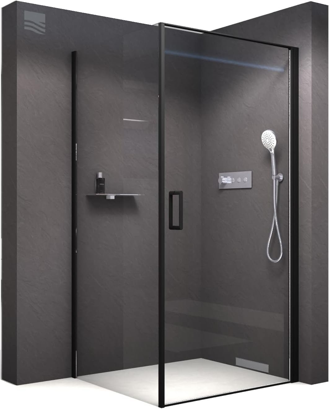 Die schwarzen Alu-Profile verleihen dieser Eckdusche ein modernes und klares Design. Eckdusche mt Schebetür Soft-Close DX906 FLEX - 8 mm Nano Echtglas Diese Eckdusche kann je nach Ihren räumlichen Gegebenheiten entweder links oder rechts montiert werden. Das laufruhige Rollensystem ist geschickt hinter einer breiten Aluminiumleiste verdeckt und sorgt für ein elegantes Erscheinungsbild. Das ESG-Sicherheitsglas ist mit einer wasserabweisenden Nano-Beschichtung versehen, die die Reinigung erleichtert. Die Duschkabine kann entweder bodeneben oder auf einer Duschwanne montiert werden und bietet maximale Einstiegsfreiheit dank ihrer überarbeiteten Konstruktion. Platzsparende Eckdusche - Profile in Schwarz matt - Elegantes Schiebetür-System mit leiser Soft-Close-Technik! Für einen flexiblen Einbau ist die DX906 FLEX in grauem Glas perfekt geeignet, denn sie kann je nach Ihren baulichen Gegebenheiten für eine Links- oder Rechtsmontage verwendet werden Duschkabine Schwarz Boromal Eckdusche Duschkabne Duschabtrennung Schebetür Eckensteg Duschkabine 140x90 Der Stangengriff aus strapazierfähigem Edelstahl ist großzügig dimensioniert. Die Eckdusche besteht aus einer Schiebetür mit Soft-Close-Funktion und einer festen Seitenwand. Das laufruhige Rollensystem ist dank der breiten Aluminiumleiste elegant verdeckt. Der formschöne Stangengriff aus langlebigem Edelstahl ist in großzügiger Länge gefertigt