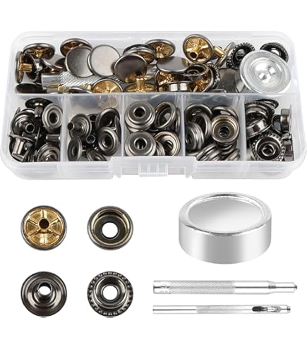 Sie eignen sich für Jacken, Jeans, Gürtel, Hüte, Haustierkleidung, Taschen und DIY-Bastelprojekte und verleihen Ihren Artikeln sowohl Funktionalität als auch einen Hauch von Eleganz. Achten Sie darauf, moderate Kraft zu verwenden, um Verformungen während der Installation zu verhindern. Sie sind nicht für dicke Stoffe geeignet, was einen sicheren Sitz gewährleistet und bei den entsprechenden Materialtypen eine hervorragende Leistung erbringt. Spezifikationen: Name: strapazierfähiges Leder-Schnapp-Set., Material: Metalllegierung. 【Benutzerfreundliche Installation】 Mit einer klaren Schritt-für-Schritt-Anleitung ist der Installationsprozess einfach. Premium-Messing-Konstruktion: Hergestellt aus hochwertigem Messing, sind diese Druckknöpfe rostfrei und so konzipiert, dass sie auch nach längerem Gebrauch in ausgezeichnetem Zustand bleiben. 120 Sätze Druckknopf Set, Druckknöpfe Metall 12mm, Metall Druckknöpfe Druckknöpfe Metall 50 Sets Druckknöpfe, Ledernieten Druckknöpfe Aus Metall Druckknopf 15mm [Komplettes Set für alle Ihre Bedürfnisse] Dieses Kit enthält 24 Sets von strapazierfähigen Druckknöpfen und 4 Setter-Werkzeuge, die alle bequem in einer Box aufbewahrt werden Bruttogewicht:155g Verpackungsgröße: 10 x 9 x 1,9 cm. 【Ideale Größe für leichte bis mittlere Stoffe】Der Kappendurchmesser dieser Druckknöpfe beträgt ca. Wir vergleichen für Sie Druckknöpfe Ler von HAUSPROFI, SUNAROC, BIXRINO und vielen anren Marken 【Vielseitige Anwendungen】Perfekt für eine breite Palette von Anwendungen, diese Lederverschlüsse können Ihre verschiedenen dekorativen und reparierenden Bedürfnisse erfüllen. 24 Sets Druckknopf Set, Kupfer Druckknöpfe ?.