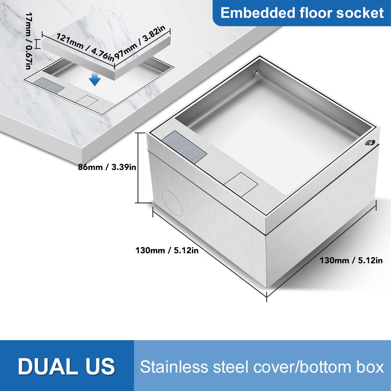 Bodensteckdose Aussen Wasserdichte Edelstahl-Bodensteckdose, 2-poliger Stecker, USB-Typ-C Bodensteckdose Wasserdicht Bodensteckdose Edelstahl, 3 Fach Einbausteckdose 2 Steckdosen + 2 USB Innen Steckdose mit usb Versenkte Fußbodensteckdose, für Boden Tisch Büro Küche Arbeitsplatte Restaurant Paketliste: 2 x Steckdose 1 x Anschlussdose 1 x Abdeckung 8 x Schraube 1 x Zubehör Anwendung: Entnehmen Sie das Produkt zur direkten Verwendung [Bequemer Stromzugang] Die Bodensteckdose bietet eine diskrete Lösung für den Zugriff auf Strom- und Datenanschlüsse, ohne dass Verlängerungskabel oder Steckdosen erforderlich sind. Vielseitige Ladelösung] Mit 2-poligem Stecker und USB-Typ Diese Bodensteckdose ist schnell aufladbar und erfüllt verschiedene Anforderungen an das Laden elektronischer Geräte in Wohn- und Gewerberäumen Suchergebnis Auf Für: Fussbodensteckdose Wasserdicht [Mehrere Installationsoptionen] Diese Bodensteckdose kann einfach auf Böden, Arbeitsplatten, Terrassen, Tischen, Küchen, Wohnzimmern, Büros und öffentlichen Bereichen installiert werden, um einen bequemen Strom- und Datenzugriff zu ermöglichen. [Vielseitige Ladeoption] Mit einem 2-poligen Stecker und USB-Typ-C-Schnellladung deckt diese Steckdose verschiedene Ladeanforderungen für elektronische Geräte in Wohn- und Gewerberäumen ab.