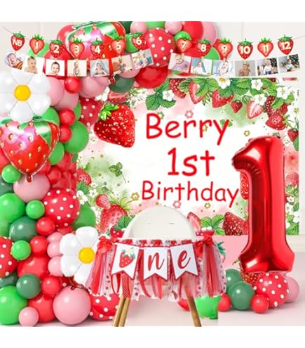 MOVINPE Erdbeer-Dekoration Zum 1. Geburtstag Für Mädchen, Berry First