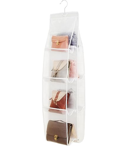 Produktgröße: Moderate Produktgröße, 116,8 cm L x 35,1 cm B, Taschenschlitz-Maße (L x B x T): 29,5 cm x 25,4 cm x 22,9 cm und die Geldbörsen-Clutches passen perfekt. Garderobe oder Regalen etc. Genug Taschen für die Aufbewahrung Ihrer Handtaschen. Faltbares Design, einfache Lagerung. Eine perfekte Aufbewahrungslösung für Geldbörsen, die Ihre Geldbörsen schön präsentiert. Ermöglicht viel Handtaschen-Aufbewahrung in Häusern, Schlafräumen und überall dort, wo es Haken oder Stangen gibt. Bettlaken, Kissen, Bezüge, Schuhe, solange Sie hineinlegen können, da es eine sehr starke Tragfähigkeit gibt. Alipis Hängender Organizer Für Den Schrank 8 Taschen Geldbörsen-Organizer Aufbewahrungshalter Für Handtaschen Fenster Zur Auswahl von Alipis Taschen Organizer Schrank H-bascs Handtasche Handtaschen Organzer – N Transparent – Taschen Handtaschen Regal Transparentes PVC und Sie können schnell wählen, was Sie wollen. Drag Specialties Gepäcknetz 15" x 15" mit Metallhaken schwarz - 6 Vinylbeschichtete Metallhaken Größe: 38 x 38 cm Farbe: schwarz Wiosi Handtaschen-Aufhänger, 3 Stück, langlebig, luxuriös, Acryl, Organizer, Aufbewahrung für Geldbörse, Tragetasche, Rucksack, Crossover, leicht zu reinigen, kein Werkzeug erforderlich Jeesblsy Tür Organizer Hängeorganizer it 5 Großen Taschen it...