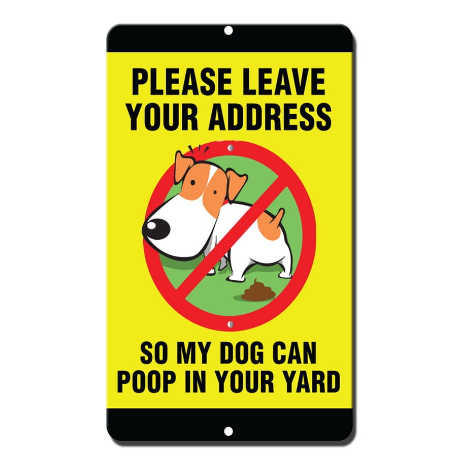 Skurrile und lustige Rechtschreibfehler und andere Fundstücke Sieht toll aus in Ihrem Zuhause, Büro, Garage, Werkstatt oder in der Mannhöhle. Jetzt ist es Zeit, Ihr wunderbares Zuhause zu dekorieren. Ideal für drinnen und draußen. Dies ist ein Schild für jedes Zuhause., 2., Aufgrund des Lichtes kann die Farbe etwas anders aussehen. Gute Qualität und umweltfreundlich. Ihre Wand braucht ein wenig Kunstdekor und hoffe, Sie können es mögen., 3., Willkommen in unserem Shop. Eine perfekte Geschenkidee für Verwandte und Freunde. Signs With Stakes Strunt Lustiges Hundekot-Nachrichtenschild "Clean If Your Dog Poops Buc Ee's Lustiges Schild mit Aufschrift"Clean If Your Dog Poops Please Leave Your Address So My Dog Can Poop In Your Yard", Metall, 20,3 x 30,5 cm Vorgebohrte Löcher für einfaches Aufhängen, kann in Mesa oder an der Wand aufgehängt werden.