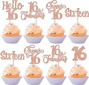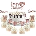 Cupcake-Topper "Happy 16th Birthday", Glitzernd, Zahl 16