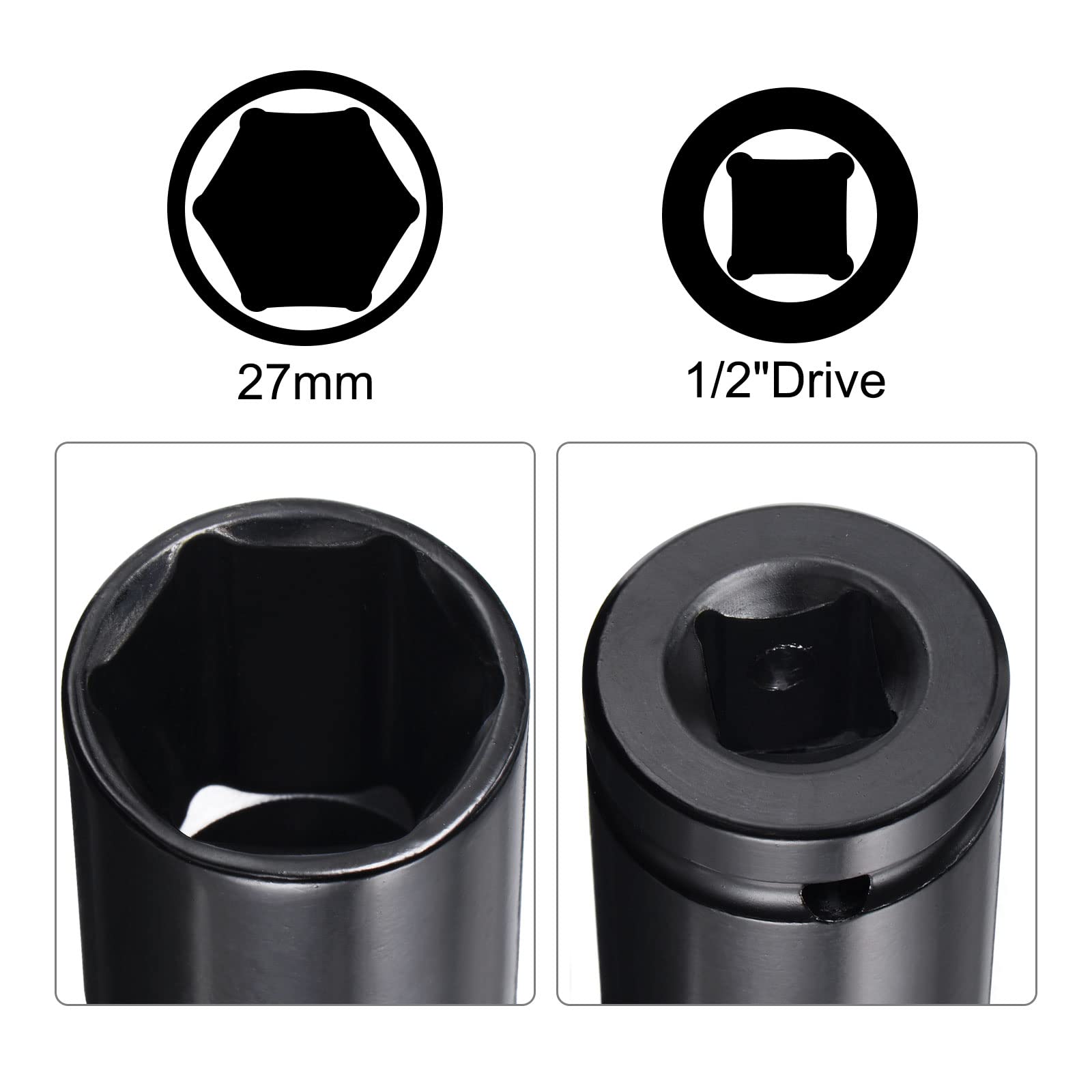 Sourcing Map 1/2" Steckschlüssel Zubehörsatz 27mm Tiefer 6 Kant