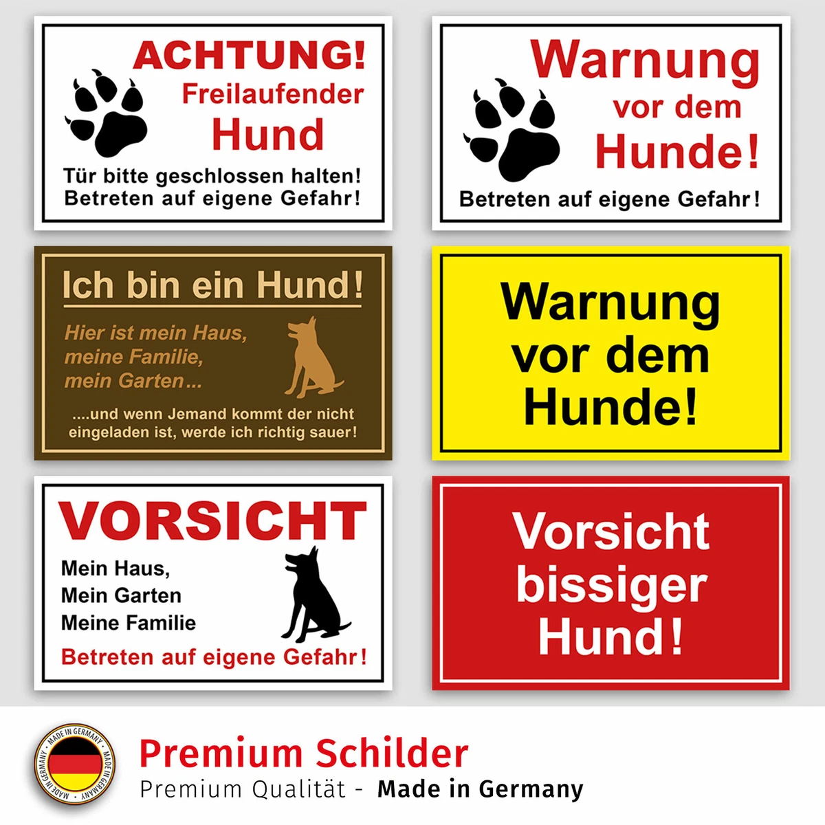 Wunderschöner Hinter-Glas-Effekt FAQ Häufig gestellte Fragen.. ? ? ? Kundenfragen Ihr Vorteil: Hochwertiger UV-Digitaldruck für brillante und langlebige Schilder! Für Innen und Außen geeignet! Bei der Größe DIN A3 werden 4 Stück ca. Beschreibung: 1., Es gibt bilder und texte von hunden auf vorsicht hund achten sie auf das freie gehen von hunden, bitte schließen sie die tür, auf eigene gefahr, warnt es menschen, dass sie mit hunden das gelände betreten haben, erinnert sie daran, sich fernzuhalten und mögliche schäden durch hunde zu vermeiden, die schilder haben reflektierende beschichtungen, die bei schlechten lichtverhältnissen auffälliger sind., 2., Unsere produkte sind langlebig und auch bei extremen wetterbedingungen deutlich gekennzeichnet., 3., XXX text ist klar und aus aluminium gefertigt, ob es sich um türen und fenster, wände, zäune, garagen, häuser oder gärten handelt, sie können es verwenden. Achtung Hund Schild Warn- Und Hinweissschild "Warnung Vor Dem Hunde" 25 Cm X 15 Cm PST Warnung Vor Hund Schild w200_h802 { text-align: center; width: 170px; font-weight: 600; color:#524F4C; height: 40px; font-size:0.94em; } . Magnet Folie in den Größen A5 bis A0.ACHTUNG!! Einfach zu Installieren: Unser achtung hund schild hat eine selbstklebende rückseite und 4 vorgebohrte löcher, sie können es nach bedarf installieren, die 4 bohrungen können dauerhaft fixiert werden, natürlich können sie es auch auf andere glatte oberflächen kleben. 60 cm x 84 cm DIN A0 ca. Witterungsbeständig* Echtglas für Gedenkbilder uvm. imgcl123{ width: 170px; height: 170px;} . Befestigung mit vier Saugnäpfen für die Größen A5 und A4.Ideal für die Anbringung hinter einer Glasscheibe oder einem Schaufenster. w200_h801 { text-align: center; width: 170px; font-weight: bold; height: 50px; display: table-cell; vertical-align: middle; background-color: #FFF1E5; border: 2px solid tomato; border-radius: 14px; font-size:1em; } . Der Allrounder und TOP-Seller Reflektierende Alu-Verbund-Schilder Alle Größen sind 3,2mm stark. Bis Größe DIN A4 mit vier Tesa Powerstrips nur auf sauberen, glatten Untergründen verwendbar. Vielseitige Befestigung: Mit selbstklebender Rückseite und vorgebohrten Löchern bietet unser Warnschild flexible Montagemöglichkeiten. Es kann an Zäunen, Türen oder glatten Oberflächen angebracht werden Größen im Überblick: Vom kompakten DIN A5 (15x21 cm) bis zum beeindruckenden DIN A0 (119x84 cm) Kreis-, Stern, Dreieck- und Viereck Buttons in verschiednen Größen für unsere Folienbuttons Materialauswahl: Kunststoff: Ideal für den Innenbereich ohne UV Einstrahlung. Nur für die Anbringung von Acryl Tür- / Namenschilder verfügbar. Aluminium: Vielseitig und äußerst robust. Maximale Warnwirkung durch Kontrast & Design: Klassisch, klar, unübersehbar! Verstärkt durch das auffällige Hundedruckmuster wird die Botschaft "FREILAUFENDER HUND" sofort erfasst – für optimale Sicherheitskommunikation Die Größen A5, A4 und A3 sind 5mm stark und die Größen A2, A1 und A0 sind 10mm stark. Produktspezifikation: Material: Aluminiumplatte Farbe: Silber Größe: 25 * 9cm Packliste: 1x Vorsicht freilaufender hund Erkennungsmarken: Unsere schild hund warnung ist eine effektive und auffällige möglichkeit, sie in privaten oder öffentlichen bereichen zu platzieren, um die menschen daran zu erinnern, dass sich in der Nähe freilaufende hunde befinden, um die sicherheit von fußgängern zu gewährleisten. Hält auf Ferro-Metallen Selbstklebende Folie Dein Design auf Größen von A5 bis A0 Witterungsbeständig (max. Transparentes Acrylglas: Perfekt für Namensschilder. Der reflektierende Allrounder RA1 Voll-Aluminium SIGNICOLOR® Alle Größen sind 2mm stark. Holz HDF: Stilvoll mit weißer Deckschicht. Voll Aluminium Schilder von Signicolor. Schilder 'Vorsicht zerbrechlich' (5), Rot (DE, EN) | Zum Ausdrucken Ideal für Straßen- / Hausnummerschilder Acrylglasschilder für Firmenschild Din A5, A4 und A3 sind 5mm stark. Die Schilder sind von außen sichtbar und befinden sich geschützt im Inneren.