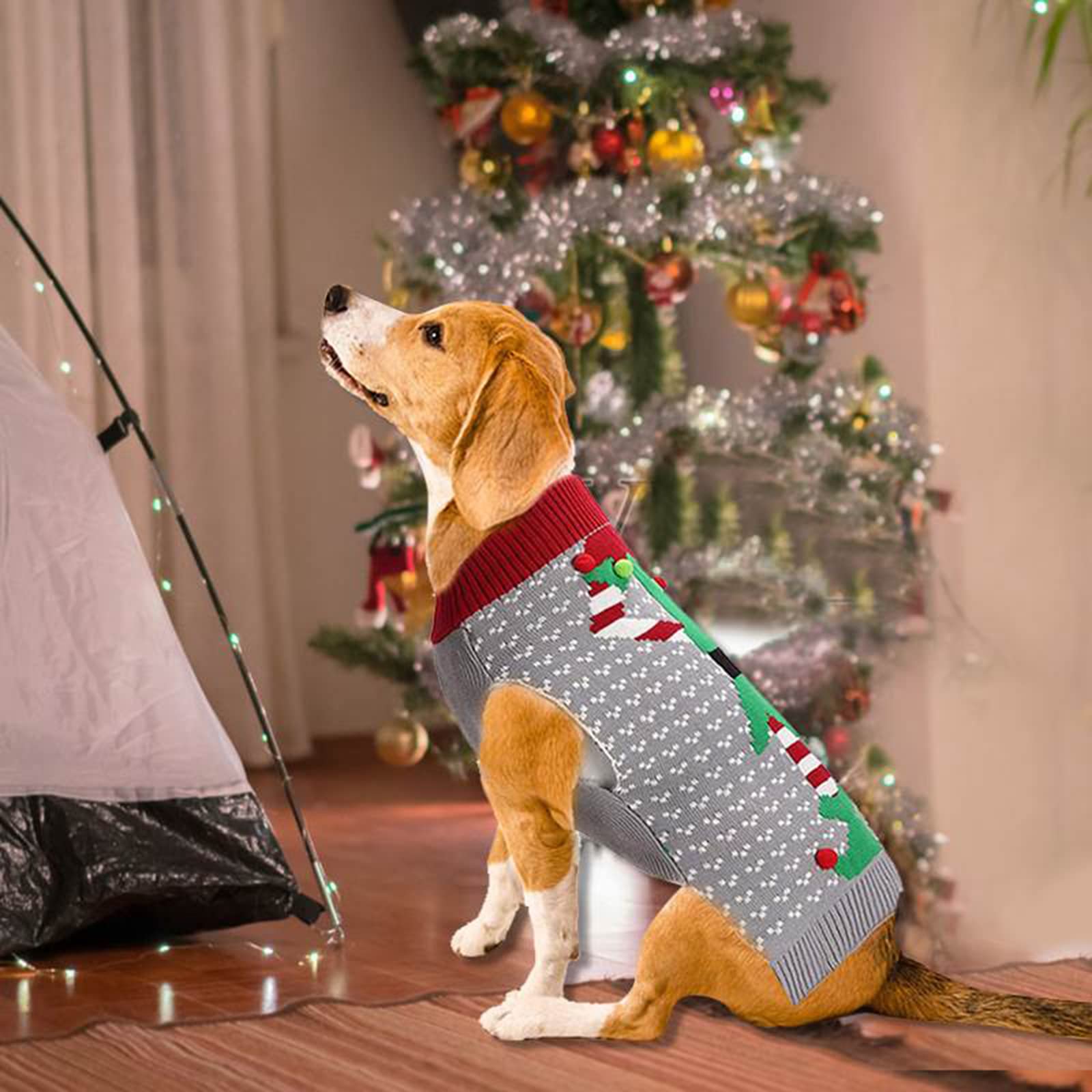 TENGZHI Weihnachtspullover Für Hunde, Bestickt, Rentier, Elfe, Clown, Rollkragen, Hässlicher Pullover, Weihnachtspullover Für Kleine, Mittelgroße Und Große Hunde, Strickwaren, Winter, Warm, Welpen