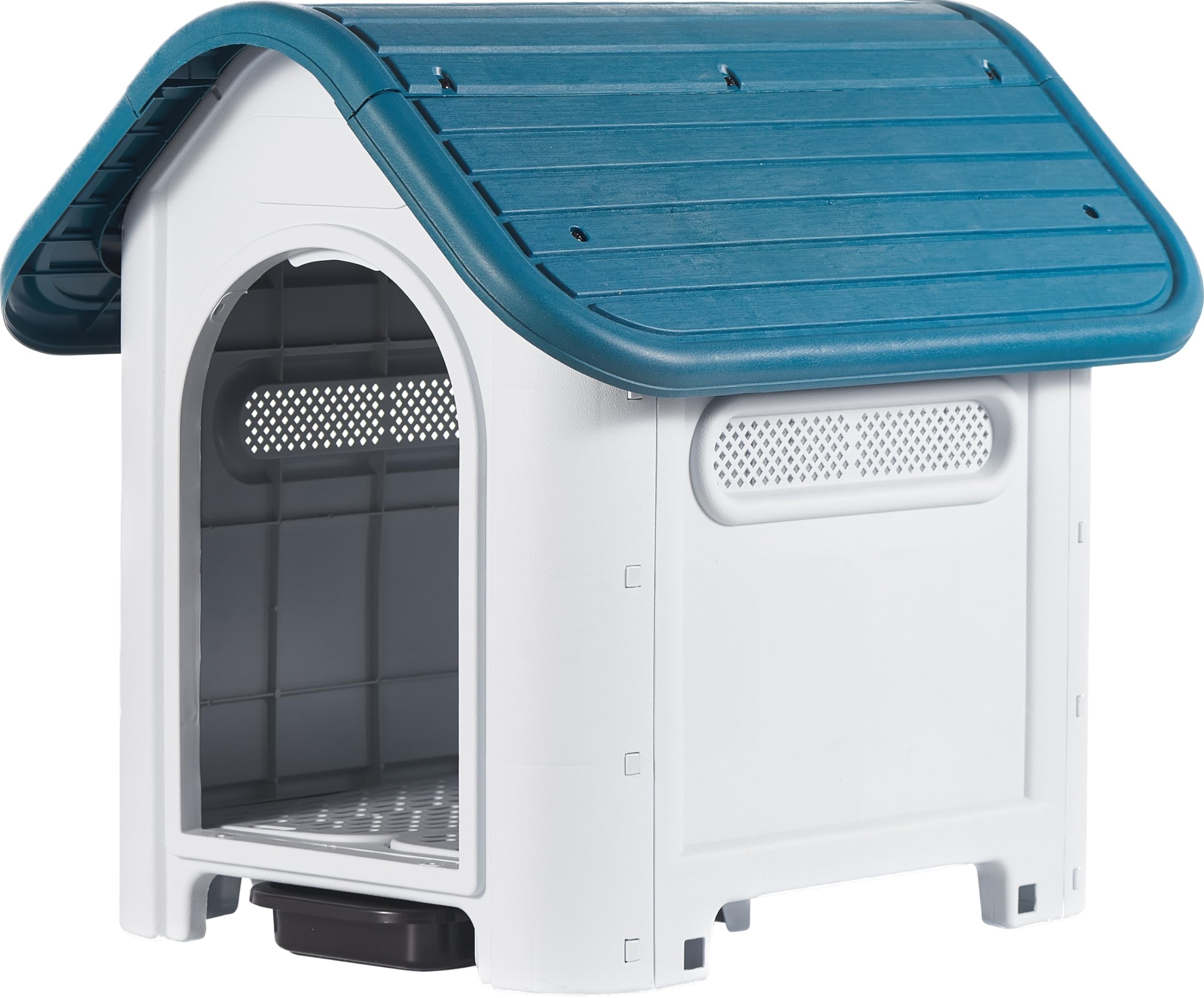 FÜR KLEINE HAUSTIERE: Diese Hundehütte für kleine Hunde bietet einen geräumigen und komfortablen Innenraum für Ihr Haustier. BESTÄNDIG: Stabile und widerstandsfähige Struktur aus ökologischem und ungiftigem Polypropylen (PP), korrosionsbeständig und mit geringer Feuchtigkeitsaufnahme, ideal für den Außenbereich und bietet einen komfortablen Platz für Ihr Haustier Lanco - Zwinger für kleine Hunde mit Toilette. Innen- und Außenbereich mit Belüftungsöffnungen. Widerstandsfähiges Material. 75x59x66cm. Blau und Weiß. von Lanco. Schöner Wohnen günstig online kaufen bei Möbel & Garten Gebrauchsanweisung Unter Aufsicht von Erwachsenen verwenden HUNDEHÜTTE MIT TOILETTE: Diese erhöhte Hundehütte im Hüttenstil eignet sich ideal für den Innen- und Außenbereich, zum Aufstellen auf Ihrer Terrasse, Ihrem Garten, Ihrem Balkon, Ihrem Wohnzimmer usw. Elegant und funktional kann es die perfekte Ergänzung für Ihr Haustier sein, damit es sich bequem im Garten, auf dem Balkon, im Wohnzimmer oder in jedem anderen Raum ausruhen kann. Ideal für den Innen- und Außenbereich. MIT LÜFTUNG: Diese Hundehütte für den Innenbereich verfügt auf beiden Seiten über Lüftungsöffnungen, die für eine gute Belüftung sorgen. Schöner Hundezwinger 2x3 mit isoliertem Schlafhaus GESAMTABMESSUNGEN (einschließlich Decke): 75 x 59 x 66 cm (Länge x B x Höhe) Für Hunde kleiner Rassen wie Pudel. Jeder Zwinger wird mit höchsten Ansprüchen an Materialwahl und Fertigung verarbeitet, um Ihrem Hund sowohl Schutz als auch Komfort zu bieten. Vertrauen Sie auf die Qualität und Langlebigkeit unserer Zwinger – der ideale Platz für Ihre Hunde, sowohl im Innen- als auch im Außenbereich Robuste PP-Struktur, ungiftig und leicht zu reinigen Zwinger mit Füßen, um die Basis über der Oberfläche zu halten und Ihr Haustier vor Feuchtigkeit und Insekten zu schützen Zwei große Lüftungsöffnungen auf beiden Seiten des Hauses sorgen für optimale Belüftung. Lanco - Zwinger für kleine Hunde mit Toilette. Innen- und Außenbereich mit Belüftungsöffnungen. Widerstandsfähiges Material. 75x59x66cm. Blau und Weiß. Lanco Hundehütte im Hüttenstil mit Satteldach, geeignet für Garten, Terrasse, Balkon usw.
