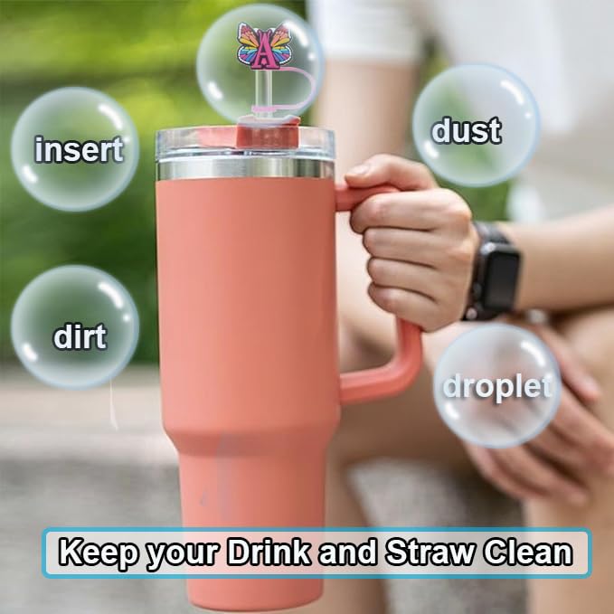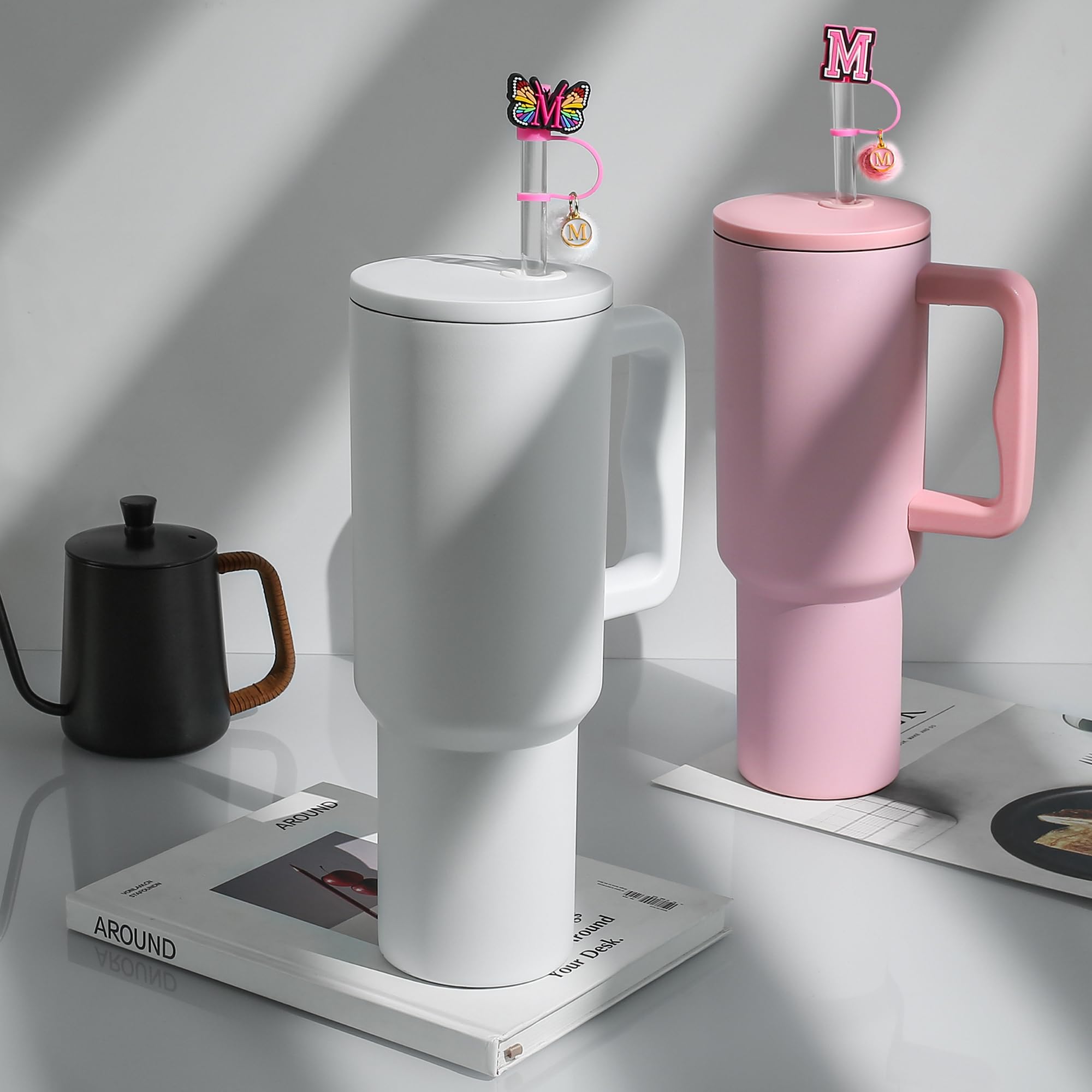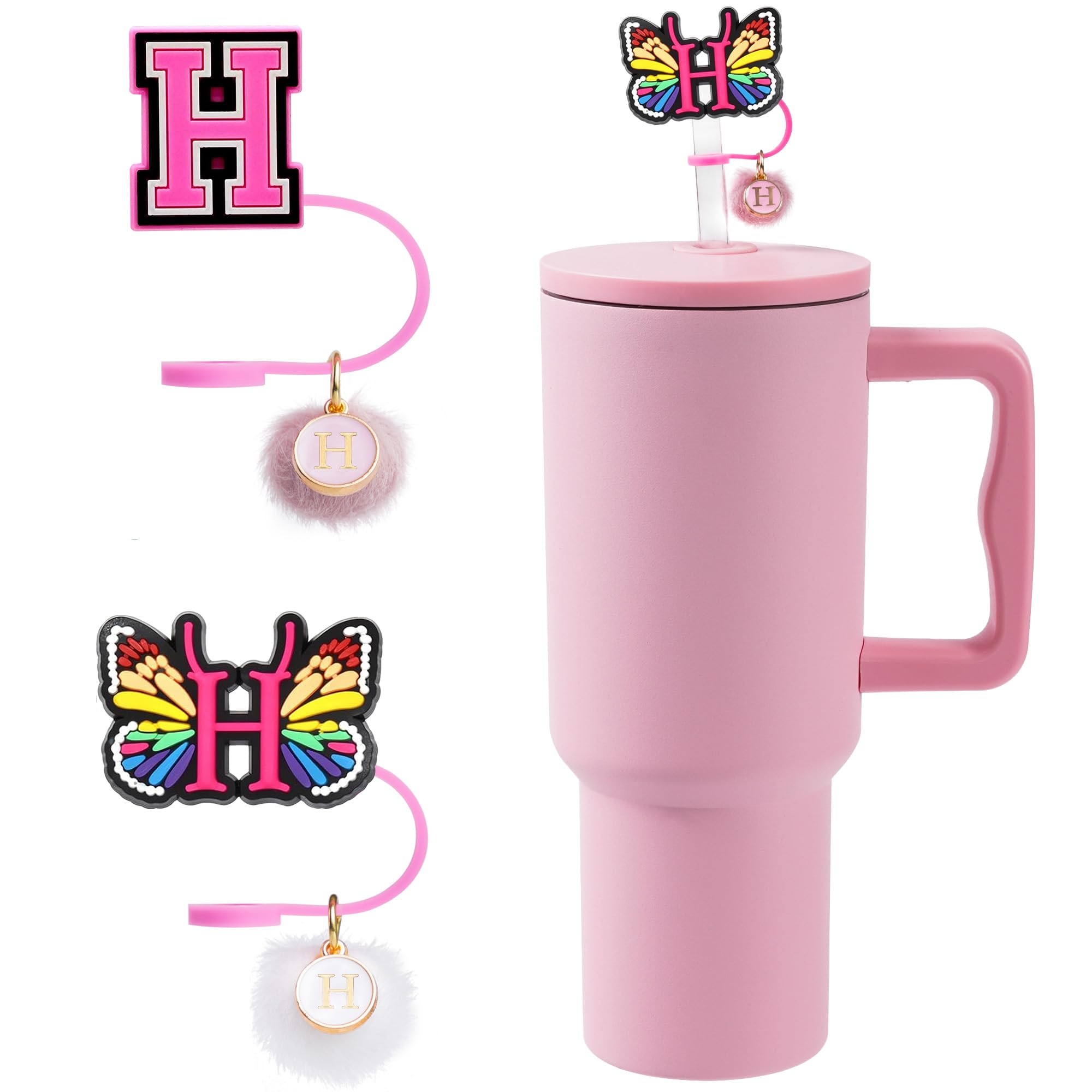 LUHOHI Anhänger Für Stanley Cup, Perlenkette, Zubehör, Stanley -Cup-Anfangsbuchstaben-Anhänger Für Griff Mit 2 Strohhalm-Abdeckungen, Dekoration, Wasserflasche, Schmuck, Becher, Personalisierte
