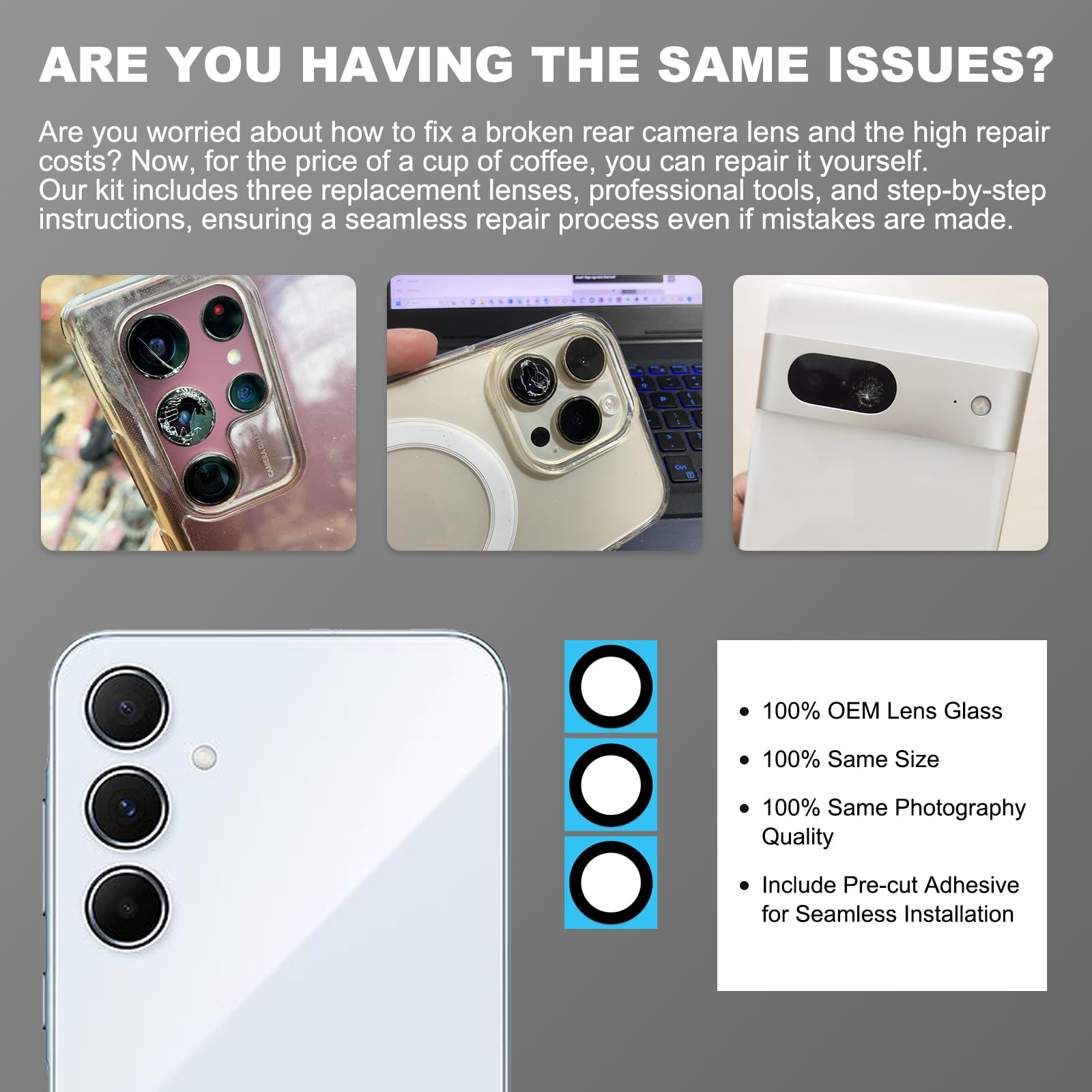 Eonpam 2er-Pack Kamera Glas Für Samsung Galaxy A33 5G/A23 5G/A53 5G Original Rückseite Kamera Linse Glas Ersatz HD Kameraschutz Camera Glass + Reparatur Set