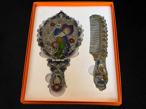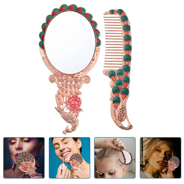 1satz Kompakter Vintage Kosmetikspiegel Mit Kamm- Tragbarer Handspiegel Für Make-up Für Badezimmer Und Reisen Dekorativer Spiegel Mit Modernem Design