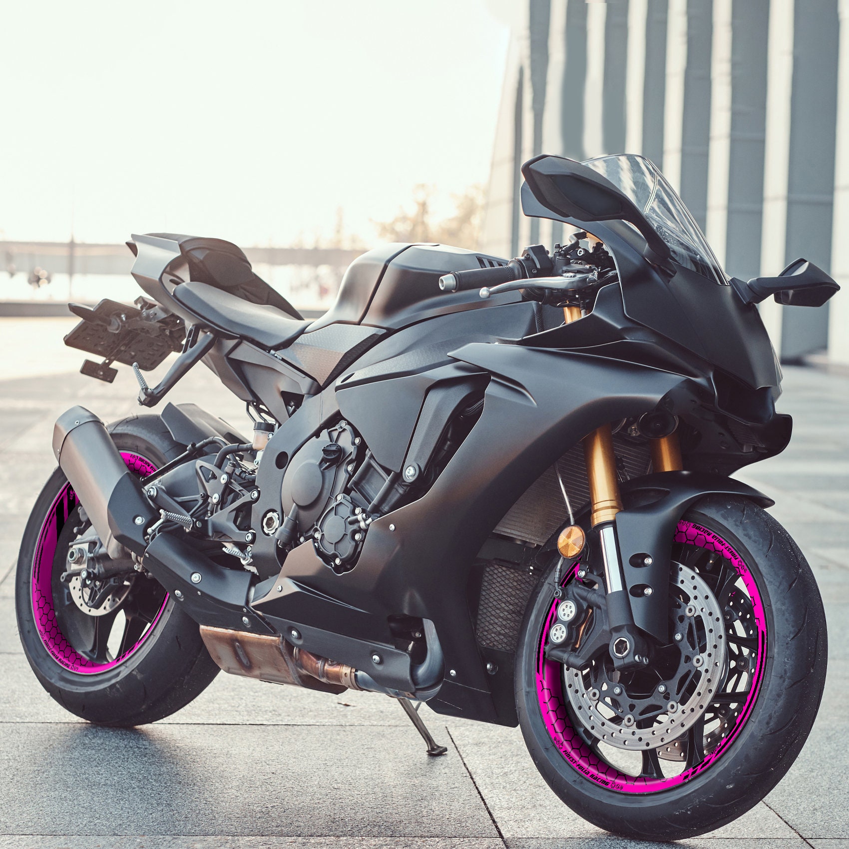 Motoking Felgenrandaufkleber GP Im GP-Design Passend Für 14 Zoll Felgen Für Motorrad, Auto & Mehr - NEON PINK