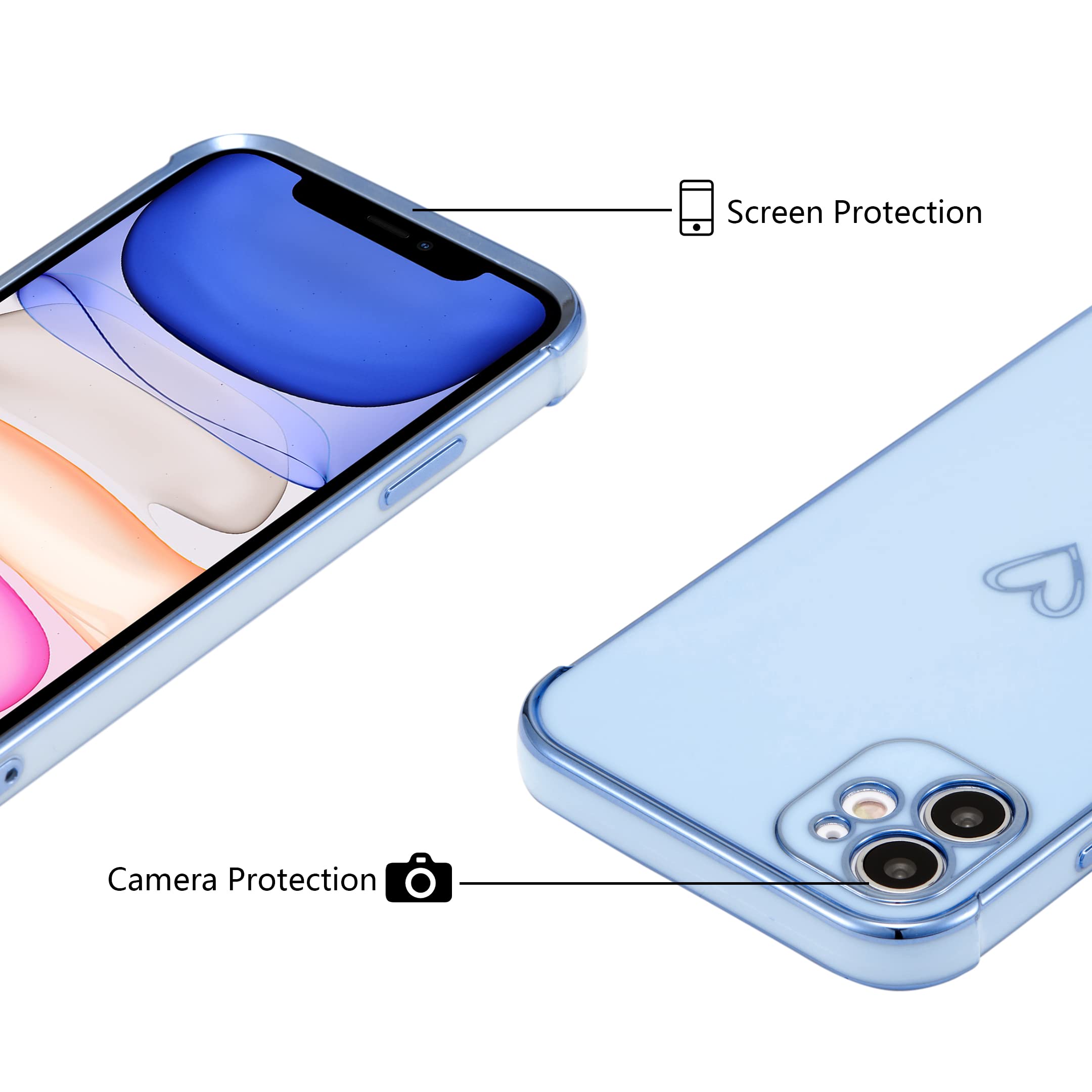 Lonrapa 2 Stück IPhone 13 Handyhülle Süße Herz Muster Motiv Hülle Für Mädchen Frauen Farbe Galvanisierte Weich TPU Bumper Silikon Stoßfest Schutzhülle IPhone 13 6,1" Phone Case Cover - Weiß & Blau