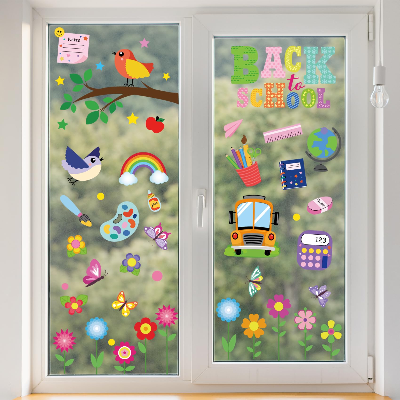 Whaline 9 Blatt Fensteraufkleber Für Schulanfang, Wichtel, Eule, Schulbus, Doppelseitig, Fensteraufkleber Für Willkommensanfang, Partyzubehör, Schule, Zuhause, Wand, Glas, Tafel, Dekorationen, 110
