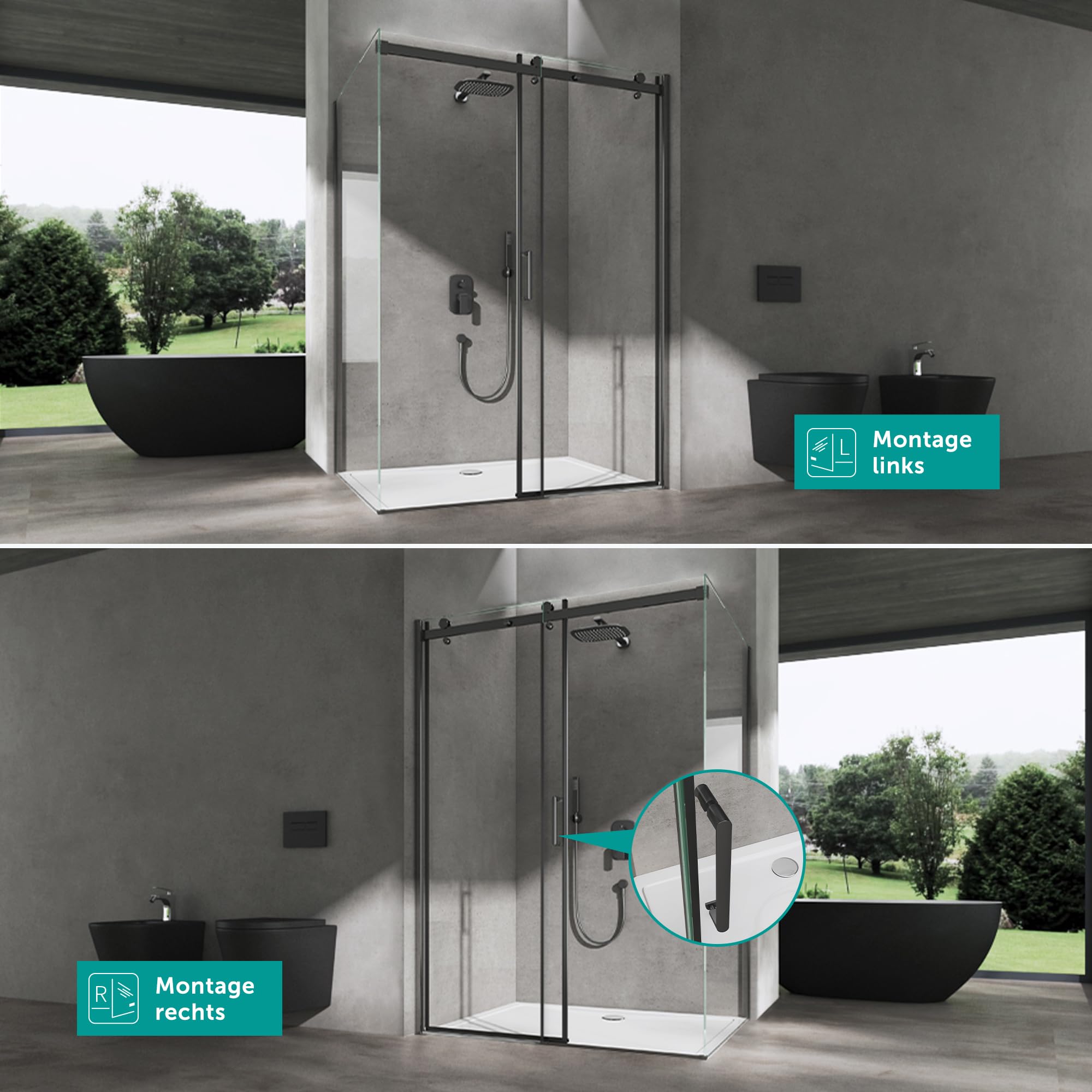 【Einfache Installation】Detaillierte Schritt-für-Schritt-Anleitung und alle notwendigen Hardware sind für eine problemlose Installation enthalten. doporro Duschkabine mit Schiebetür Eckdusche 90x120x195cm Duschabtrennung schwarz 8mm ESG-Sicherheitsglas Klarglas inkl.Nano-Beschichtung Ravenna19 【Verstellbares Design】Schwenkbare rahmenlose Glas-Duschtür 86,4 cm Breite und 182,9 cm Höhe, die Breite kann 2,5 cm eingestellt werden, wodurch sie flexibler an verschiedene Wandabstandbreiten angepasst werden kann. Die Breite der Türrahmen auf der linken und rechten Seite kann angepasst werden. Doppelter Tropfschutz für den unteren Spritzschutz und Edelstahlgriff: Die schwenkbare Duschglastür ist mit magnetischem Tür-Saugnapf und durchgehenden magnetischen Duschtürdichtungen und Bodendichtungen ausgestattet, macht nicht nur das Schließen der Tür leiser und glatter, sondern verhindert auch effektiv, dass Wasser aus der Dusche austritt, wenn Sie duschen., Griff aus 304 Edelstahl. Linke oder rechte Seite offen: Die schwenkbare Duschtür ist reversibel für die rechte oder linke Türöffnung für Ihr Layout. Mit den Maßen von 86,4 cm B x 182,9 cm H und verstellbarer Breite von 86,4 cm bis 89,4 cm passt diese Tür perfekt zu Ihrem Raum und bietet gleichzeitig eine begehbare Öffnung von 68,6 cm. Alle Beschläge verfügen über ein schlankes Chrom-Finish, das Ihrer Duschkabine einen Hauch von Eleganz verleiht Glascentro Duschtüren Katalog Faltbare Duschtür, 83,8–86,4 Cm B × 182,9 Cm H, Rahmenlose Duschtür 90cm SGCC-zertifiziertes gehärtetes Glas: Die Schwingduschtüren sind aus 6 mm SGCC und ANSI-zertifiziertem gehärtetem Glas. Wählen Sie aus unserem Sortiment die passende Nischendusche aus und geben Sie die Maße für die Duschtür ein. Wir passen die Duschtür exakt an Ihre baulichen Gegebenheiten an. Jede Glastür wird individuell nach Ihren Vorgaben gefertigt – für ein perfektes Ergebnis in jeder Nische