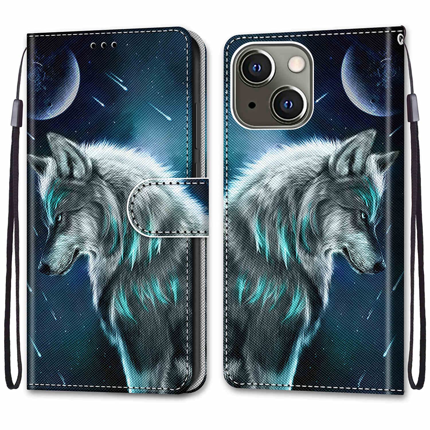 HopMore Handyhülle Für IPhone 13 / IPhone 14 Leder Hülle Klappbar