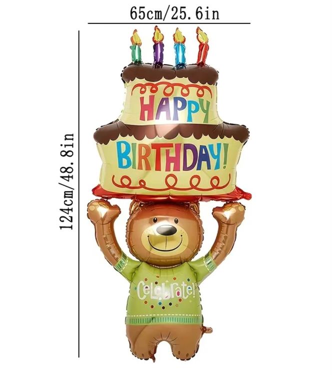 Bitte breiten Sie ihn zur Belüftung an einem belüfteten Ort aus. Einzigartige Tiermuster können Ihrer Party oder Zusammenkunft eine angenehmere Atmosphäre verleihen. Einfach zu montieren: Hängen Sie das Banner einfach an einer beliebigen Stelle auf und blasen Sie die Ballons mit Helium oder Luft auf, damit Sie ohne Heimwerkeraufwand oder Spezialwerkzeug eine Party mit Stil veranstalten können. Die exquisiten und schönen Luftballons verleihen Ihrer Party ein feierliches Gefühl und hinterlassen wundervolle Erinnerungen bei Ihnen und Ihren Gästen. Folienballon mit einheitlicher Farbe und Glanz. Wir werden unser Bestes tun, um Ihnen einen zufriedenstellenden Service zu bieten. Produktbeschreibungen Spezifikation: Material: Hochwertiger + Aluminiumfolie Farbe: Wie abgebildet Menge: 5 Stück Paket beinhaltet: 2 x Bären-Folienballon 1 x Süßigkeitenballons 1 x Autoballon 1 x Alles Gute zum Geburtstag-Banner Warnhinweise 1 Happy Birthday Bär - perfekt für einen Kindergeburtstag, bestehend aus 5 Ballons. Ein Happy Birthday Ballon ist ein perfektes Geschenk für ein Kind, das seinen Geburtstag feiert. Es bringt Freude und Feierlichkeit in die Atmosphäre und lässt das Geburtstagskind sich besonders fühlen Bären Deko Landrain 16 Stück Braunbärenkopf Luftballon Tiere, Bären Waldtiere Geburtstag Deko Ballon, Bär Ballon Happy Birthday Party Dekoration: Unser Ballon ist mit einem niedlichen Bärenbild gestaltet, das sehr süß und interessant ist. Exquisite Ballon Dekorationen verleihen Ihrer Party ein zeremonielles Gefühl, sorgen für eine fröhliche Atmosphäre und schaffen wundervolle Erinnerungen für Sie und Ihre Gäste. Luftballon Geburtstags-Bär (Neu und originalverpackt) in Fällanden für CHF 5 - mit Lieferung auf Lieferumfang]1× stehender Folienballon in Form einer mehrstöckigen Geburtstagstorte mit [Extra große Dekoration]Die Ballons haben eine beeindruckende Größe und werden sofort zum Blickfang auf dem Geburtstagstisch, im Eingangsbereich oder als Foto-Highlight