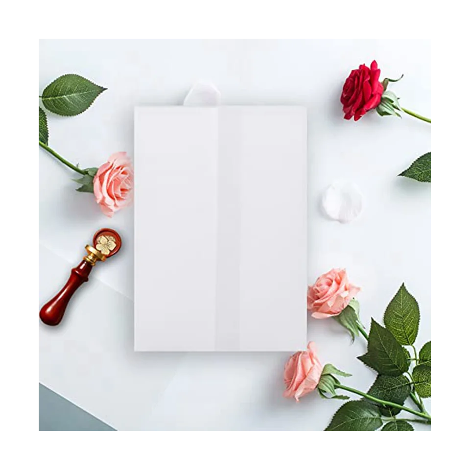 AosBet 200 Stück Gefaltete Pergamentumhüllen Für 12,7 X 17,8 Cm Einladungen, Durchscheinendes Papier Für Einladungen, Grußkarten, Fotodrucke