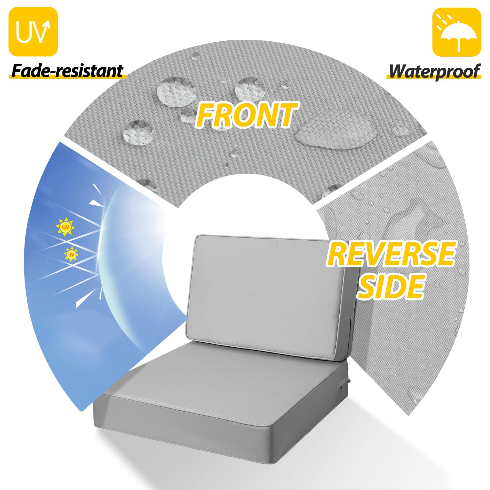 【Rutschfeste Krawatten und Paspelkante】 Die beiden rutschfesten Bänder können an Ihren Möbeln befestigt werden, um das Outdoor-Kissen an Ort und Stelle zu halten. Schaumstoffeinsätze und -bezüge sind separat verpackt – überprüfen Sie beide., Einfache Montage erforderlich 【Breite Verwendung & Tipps】Unsere tiefen Sitzkissen für den Außenbereich sind ideal für Gärten, Terrassen, Balkone, Decks und mehr. Jedes einzelne Kissen enthält zwei Bezüge, eine Kisseneinlage und einen Sitzschaum. Sie passen auf Loveseats, Sofas und Wippen. Der Bezug mit Reißverschluss ermöglicht eine einfache Reinigung und Austausch, mit versteckten Reißverschlüssen für einen nahtlosen Look Sitzkissen - anthrazit - uni - 38x38 cm | Online bei kaufen Sitzkissen Für Handwäsche AAAAAcessories Sitzkissen Für Den Außenbereich, Schaumstoff, Tief, 61 X Schaumstoff Sitzkissen Kinder AAAAAcessories Tiefe Sitzkissen für den Außenbereich, wasserdicht, lichtbeständig, Ersatzkissen für Terrassenmöbel, 61 x 61 x 12,7 cm + 61 x 34,3 cm, Beige : : GartenInfo zu diesem Artikel Über Größe: Sitz: 61 x 61 x 12 cm (L x B x H), Rückenlehne: 61 x 34 cm (Toleranz Über Größe: Sitz: 61 x 61 x 12 cm (L x B x H), Rückenlehne: 61 x 48 cm (Toleranz: 1,3 cm). Einige Nähte sind mit Paspeln versehen, was die Kanten verstärkt und das Outdoor-Möbelkissen stilvoller macht ECOPOTS Blumentopf Pars 60 Weßgrau, für den Außenberech: frostscher... 【Verbesserter Kissenschaum】Dicker, puderfreier, hochbelastbarer Schaumstoff nimmt nach Gebrauch schnell seine Form wieder an, bietet weiche Unterstützung und dauerhaften Komfort. Die Gesamtmaße betragen 10 cm x 74 cm x 74 cm (H x B x T).